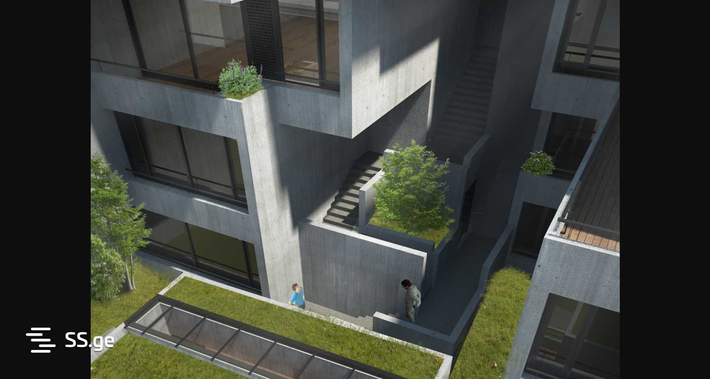 The project building is located near the road leading from the university high-rise building to Nafitvri. The project object consists of a two-story 45-car parking lot and four independent residential blocks. The residential blocks are connected to each other by a courtyard and stairs. Three elevators connect the apartments and the lobby. There is a system of open corridors from the apartments to the elevator. The building is on average 3-4 floors high. The exterior facade is made of concrete and has a green roof.