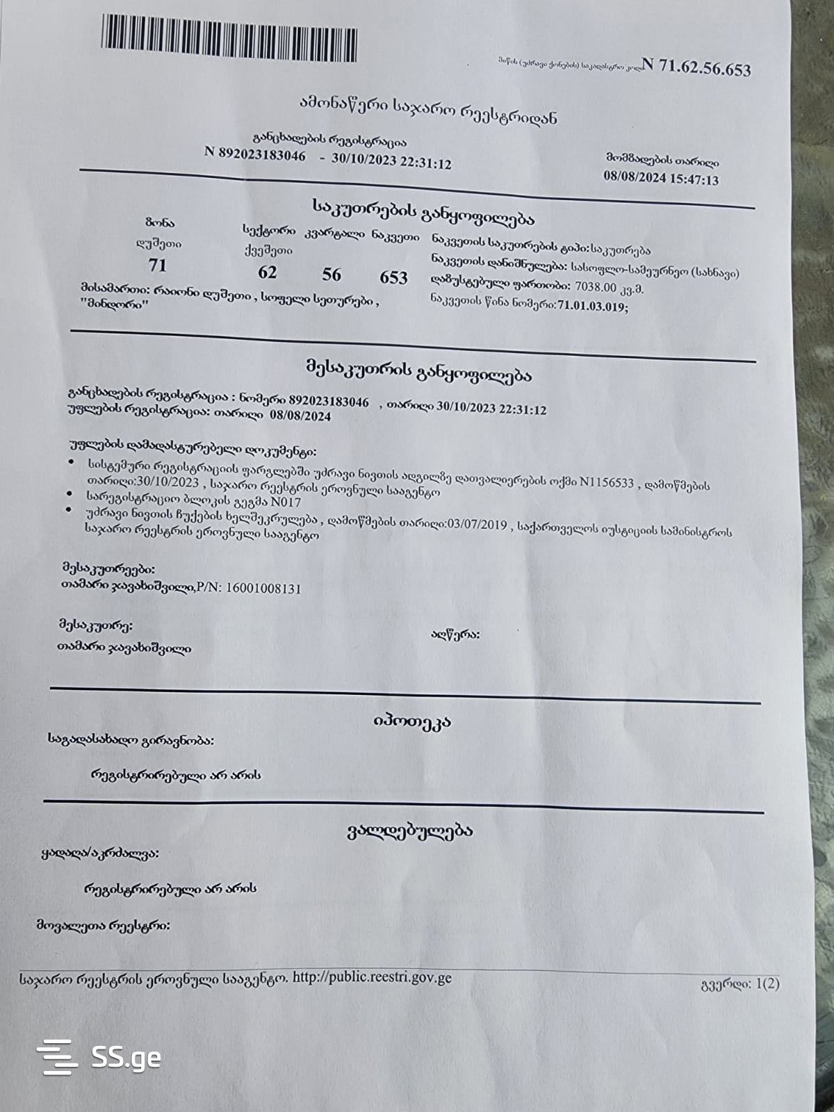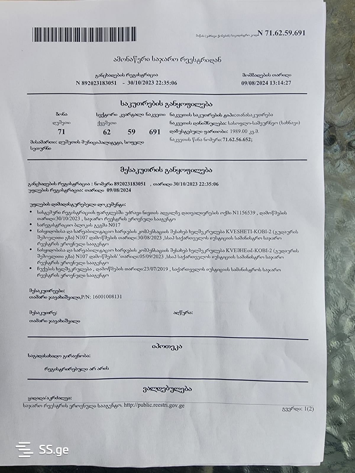 Land For Sale. Seturebi