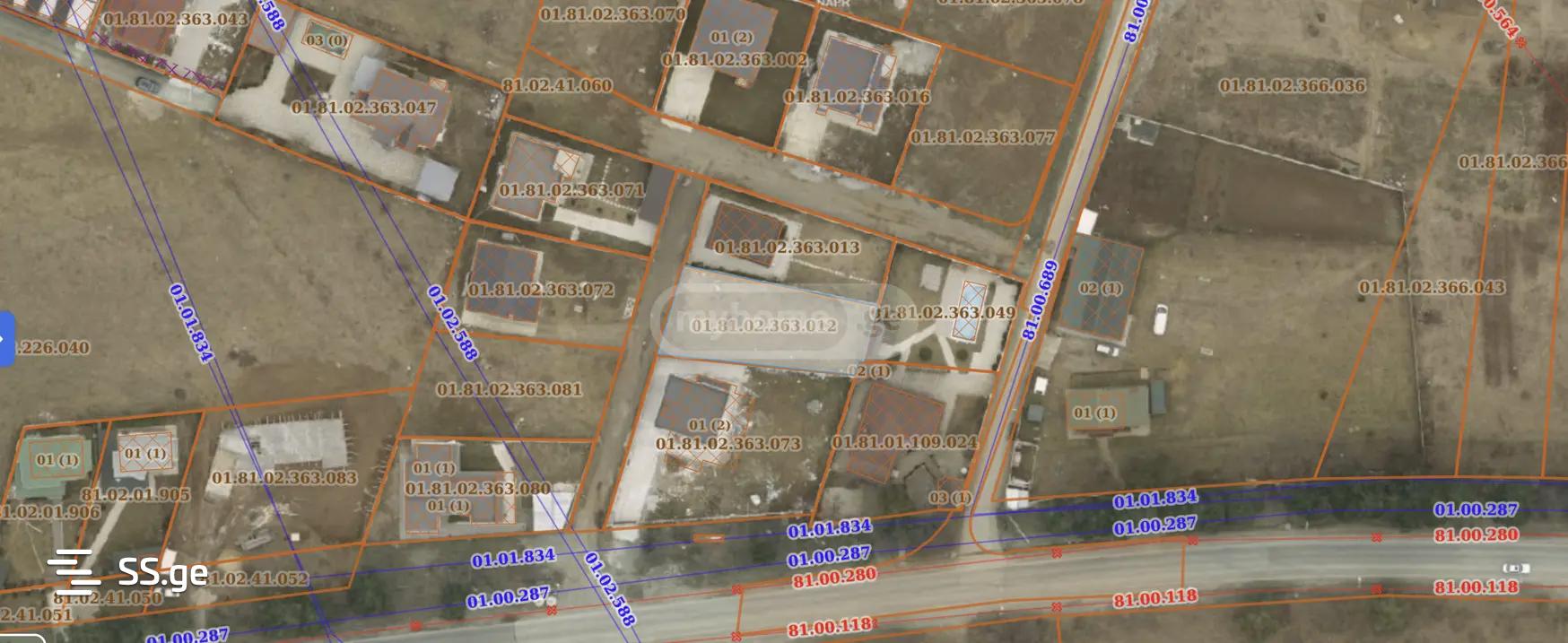 515 sq.m. land plot for sale in Tabakhmela, near the bus stop, 30 meters from the central road, with a building permit and an approved project. Electricity, gas, water, sewage, all communications are in place.