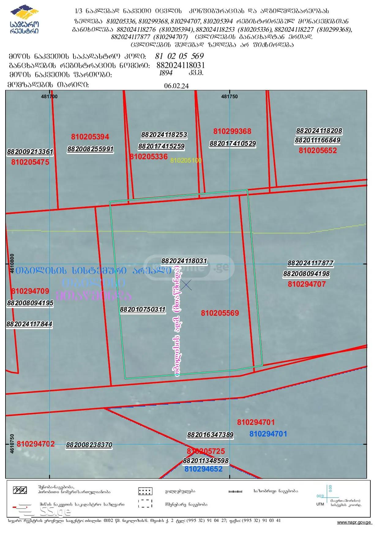 Land for sale in Tabakhmela, 1894 m2. View of Kumi and Tbilisi partially. (GRG) done (2year process passed), water, gas, electricity in place
