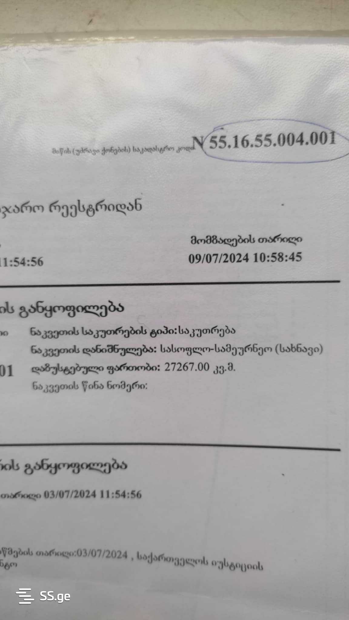 A plot of land is for sale in Ujarma. The plot has a 1500-ton concrete pool, there is an irrigation canal nearby, and electricity is close by. The price is $4.50 per square meter.