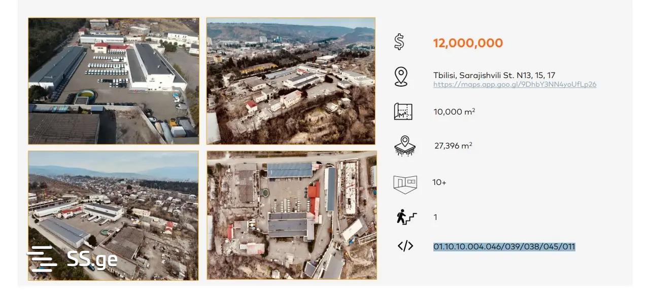 The best space for industrial and logistics purposes:✅ Ideal for:Large factoryTerminal/distribution centerWarehouse complexFor industrial zone development or investor looking for readymade infrastructure✅ Infrastructure:Wellequipped internal courtyard and building layoutEntrances and yard volume ideal for truck trafficNearby residential and industrial zone✅ Property – ready for immediate use or development🌐 Advantages:Access road and communications are fully providedRarely large area within TbilisiLegally sound status and registrationSeveral independent entrances and building configuration📞 For details or to quote an estimate, please contact us.📌 Land plots of this size remain on the market as a unit in this zone – don’t miss out!📍 Category: Commercial Property • Investment Land • Industrial Zone