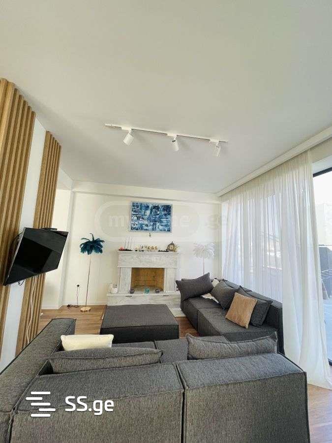 Premium class apartment for rent near Digomi City Court 3 rooms Euro renovation well furnished 2 bathrooms white marble fireplace. Terraces around 400 sq.m. House area 250 sq.m. Furniture will be vacated in the shortest possible time.