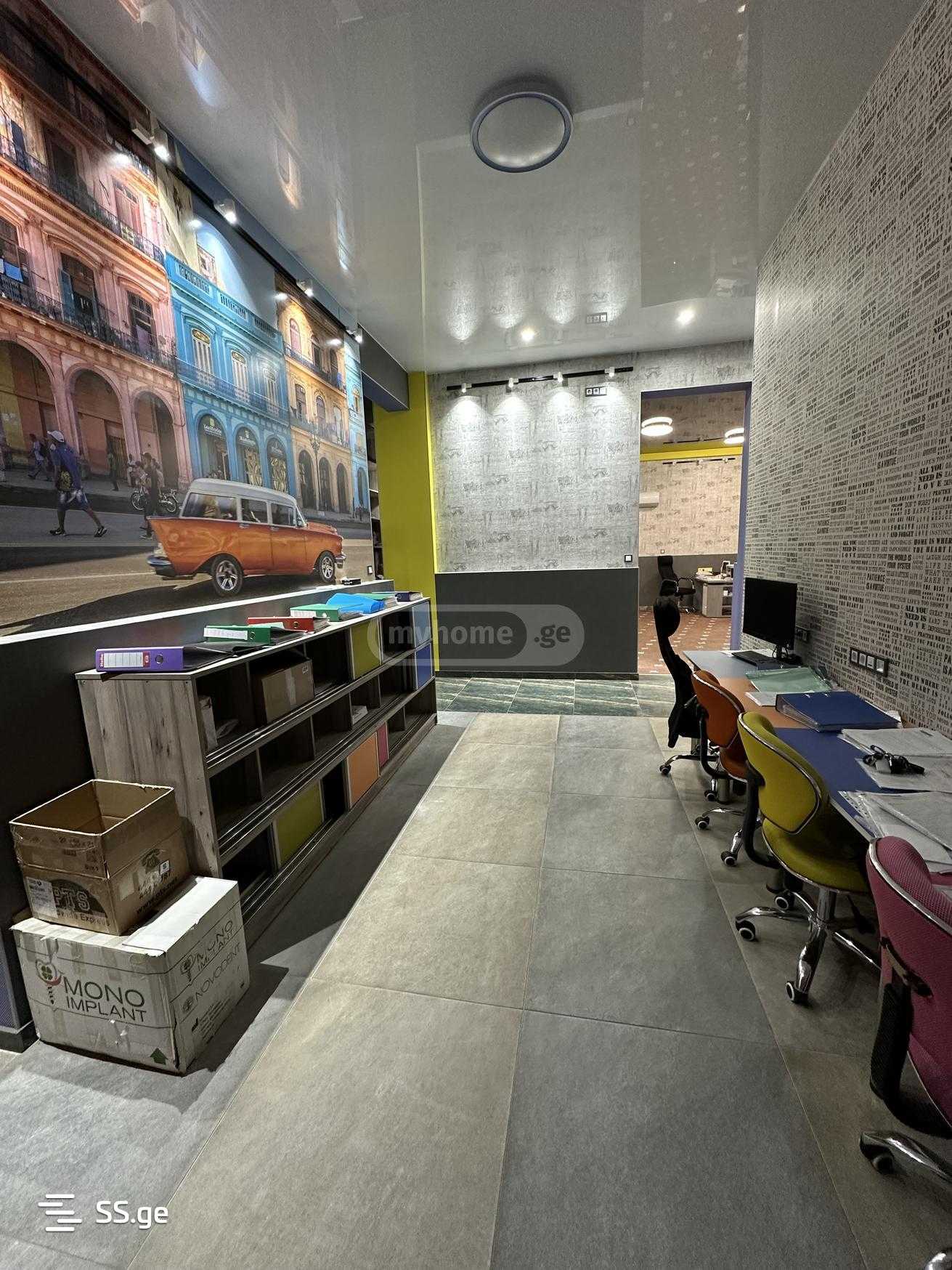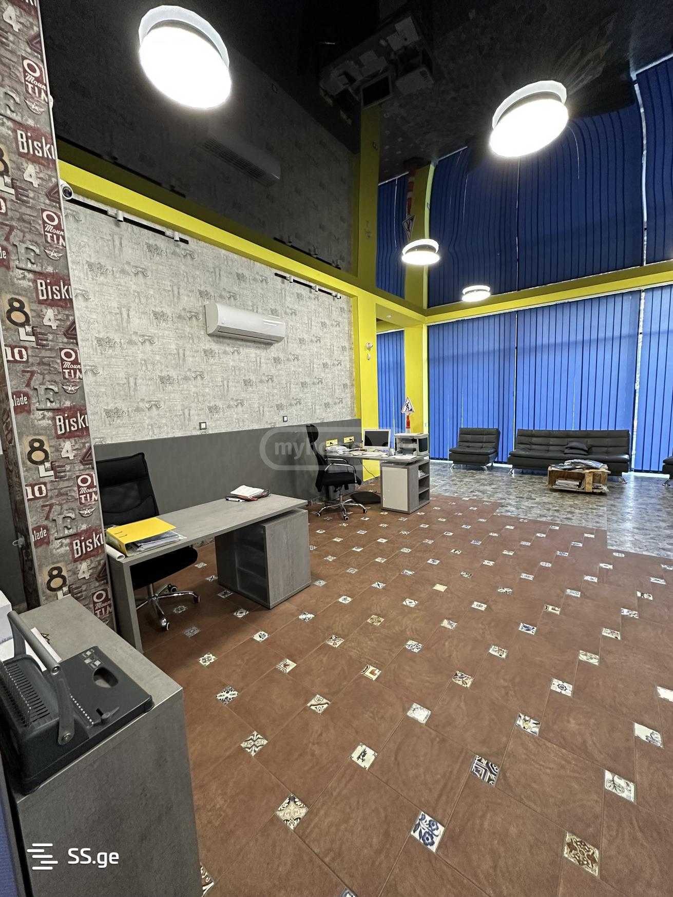 In Tbilisi, D. Guramishvili Avenue 30, Building 1, 140.15 square meters of renovated office space is for rent on the first floor. The office has an individual kitchen, two bathrooms, one isolated office, two large work spaces, a meeting room. An air conditioning-heating system is installed. It is rented with or without existing furniture. It is designed for 10-15 people. There are always parking spaces in the yard.