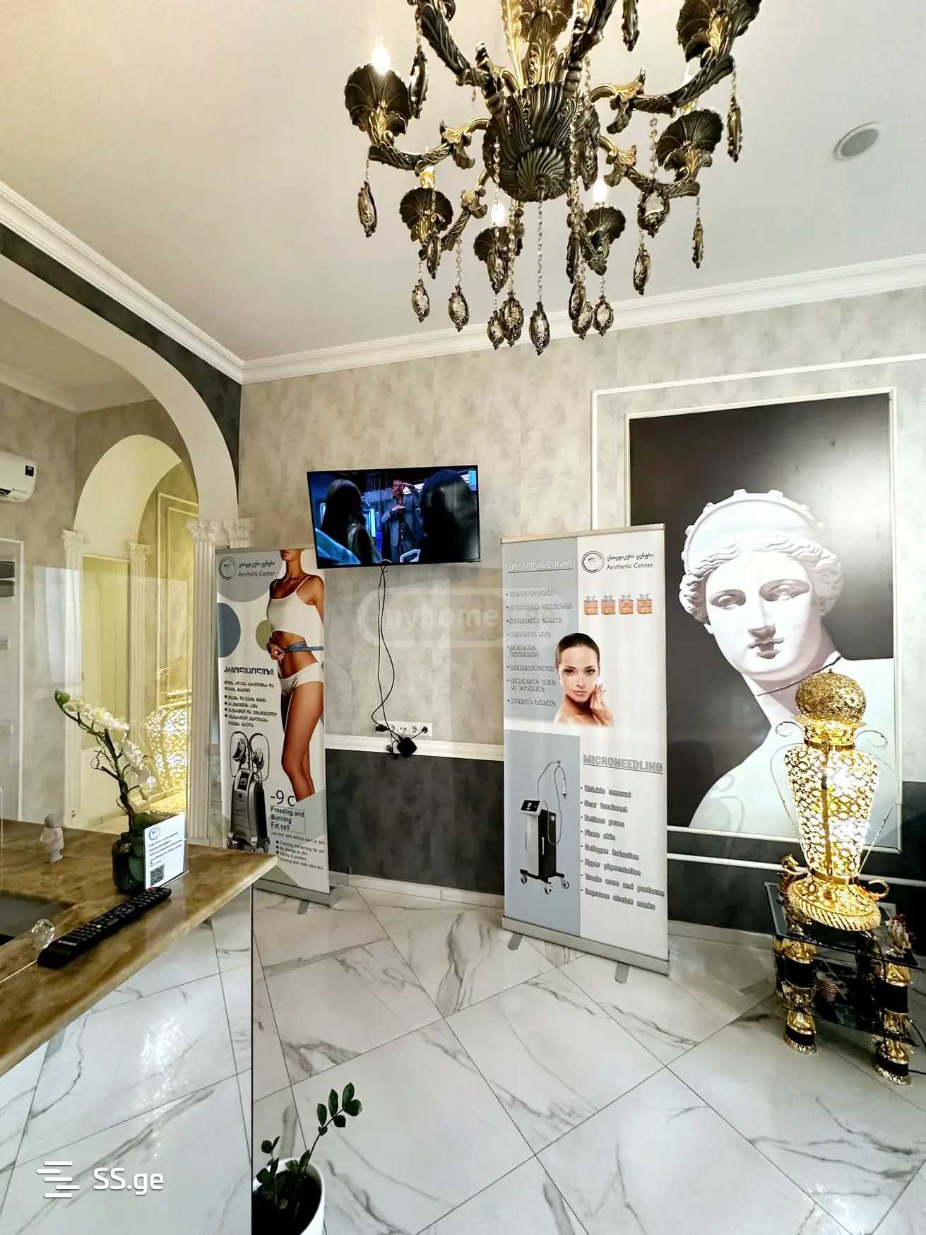 A functioning aesthetics center is for sale, both as a whole and as separate space without equipment and devices. There are 6 cabins with their own wet points. Dining kitchen, balcony. Storage type is basement 10 sq. It has 2 entrances. The area is equipped with cameras and a security system. The location is excellent, and traffic is in a crowded place.