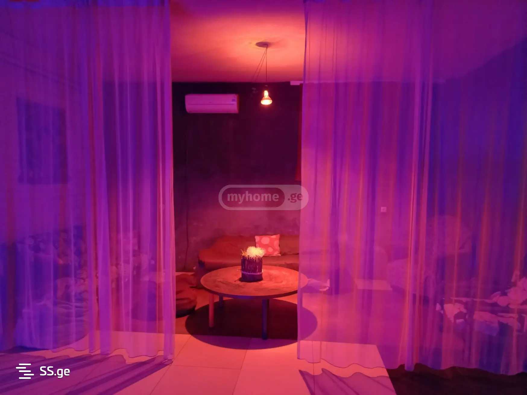 A cottage is for rent daily, 10 minutes drive from Tbilisi Mall, near the turn to Saguramo. Powerful speakers, lasers, and lights,,, club area. We do not have neighbors. There are skewers and a barbecue. A kitchen arranged in a bar style. 1 bedroom