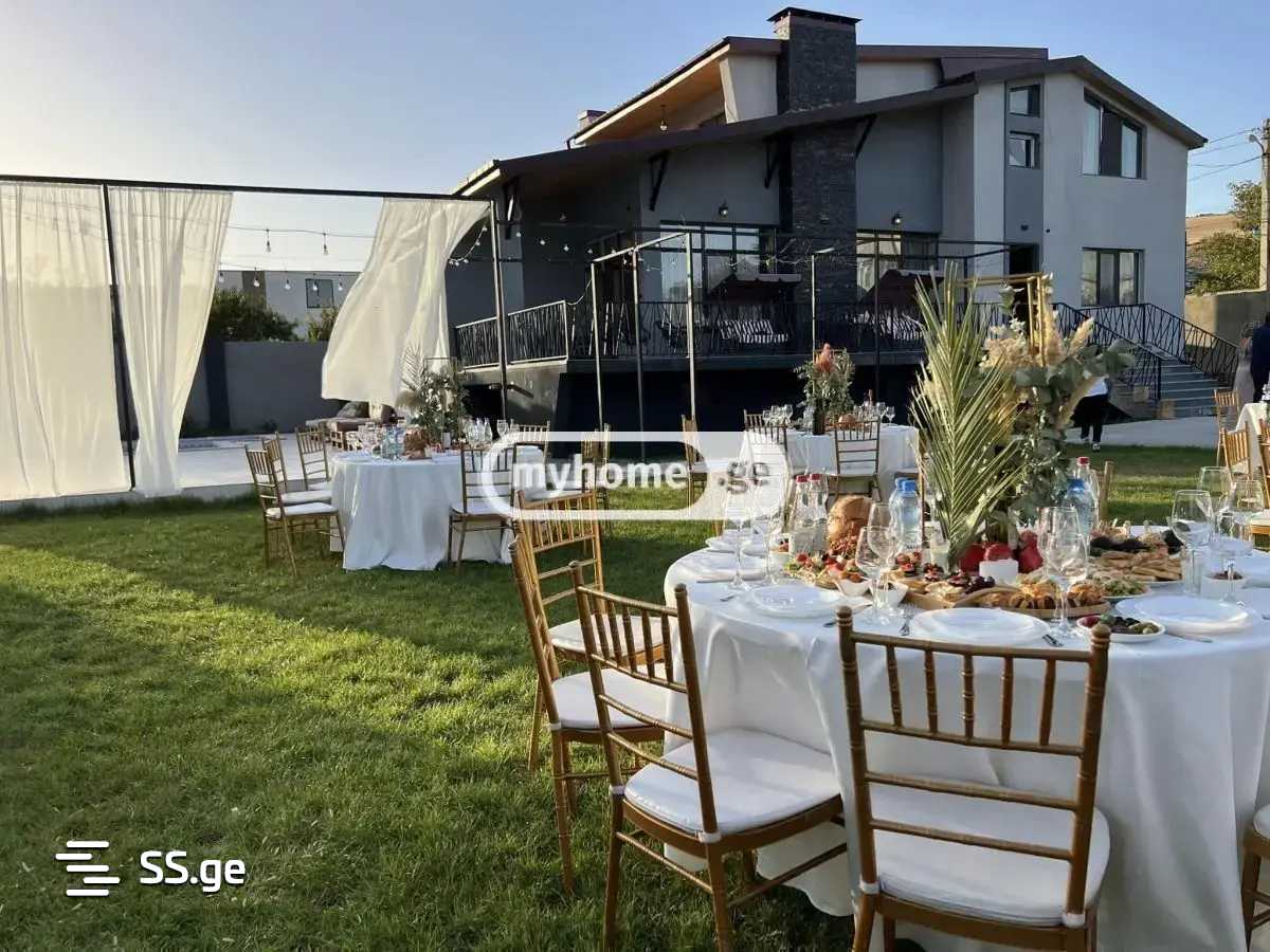 Promotion this month!! House for rent for a party. In the space, you will find: 2 air-conditioned halls (underground hall with speakers, lasers, and disco ball) with inventory. Tables, chairs, dishes. Fully equipped kitchen, yard with a gazebo, 2 bathrooms, 1 bedroom, and 2 lounges, also, on the 3rd floor, there are 2 additional bedrooms and 1 bathroom (not included in the initial price) the house is fully equipped with all necessary inventory, 1500 square meters yard with an open pool and jacuzzi, the price depends on the number of guests we have both buffet and Georgian table service, also design (birthday, wedding, and other events). The price is variable depending on the days and the number.