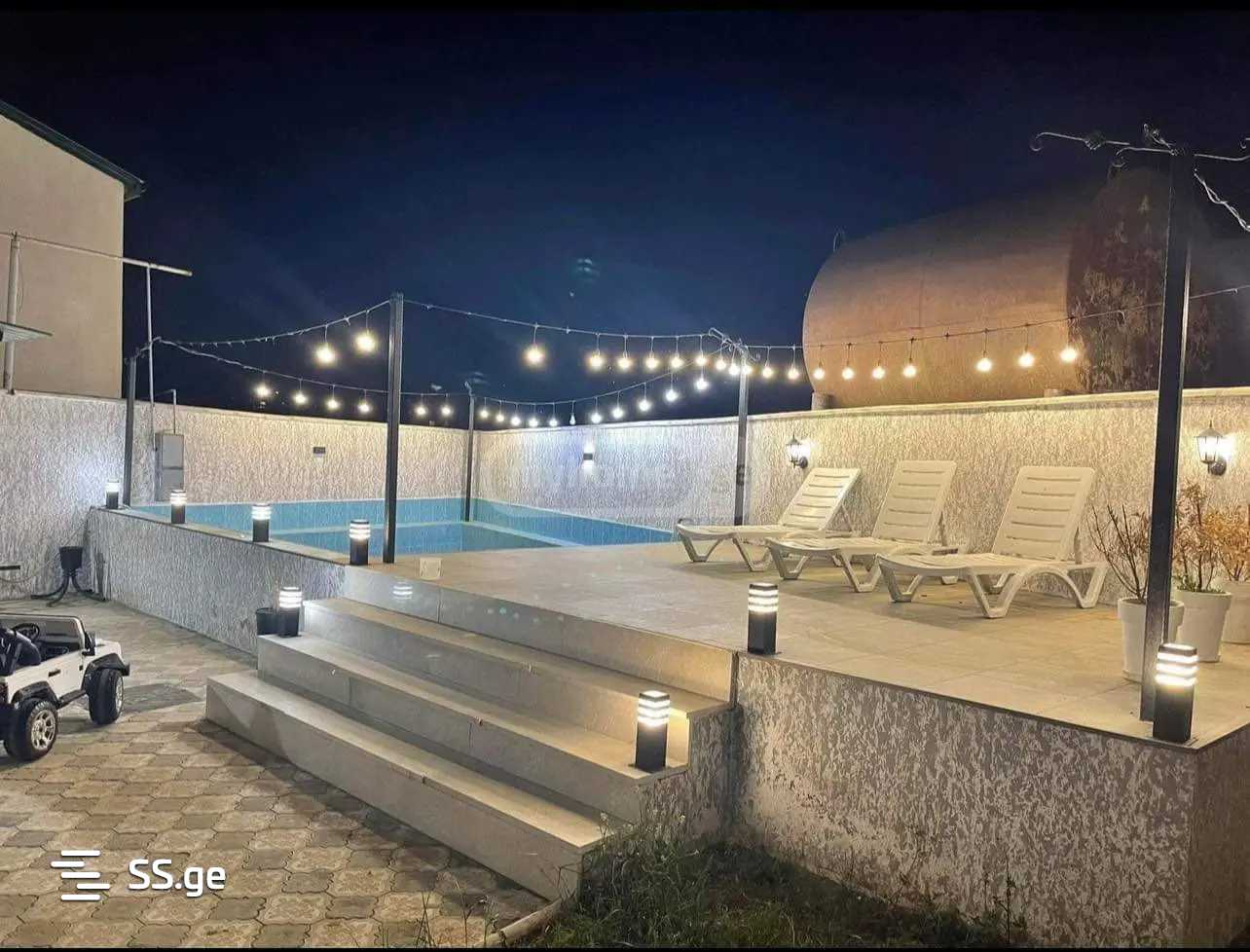A three-story, well-furnished house is for rent on the lake in Gldani, with a large fenced yard, a pool, and all the necessary items. Speakers, grills, skewers, everything is in place. The price varies depending on the quantity.