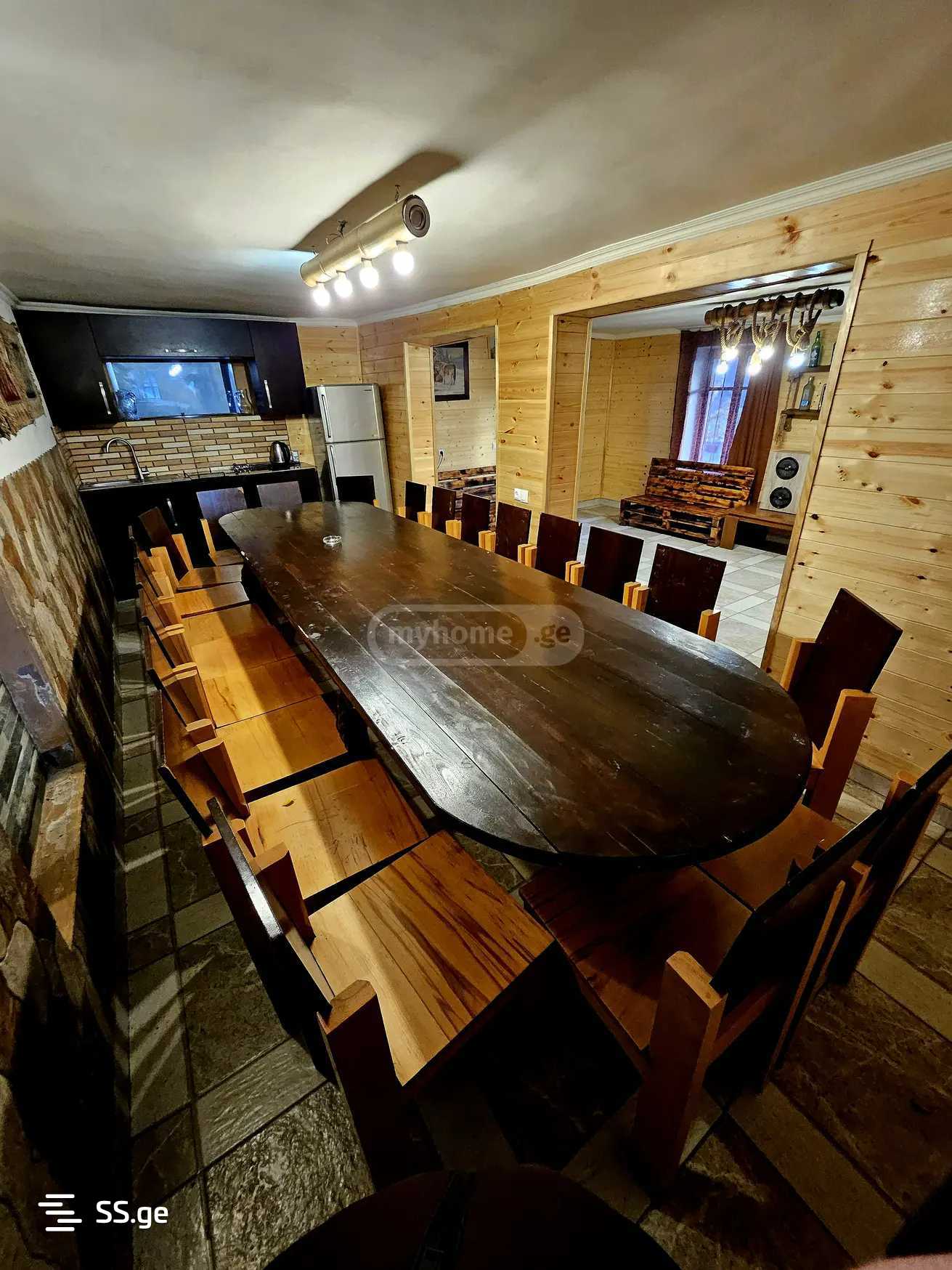 For rent daily a 3-story furnished private house, the house has 5 isolated bedrooms, for special events such as birthday parties, corporate evenings, or any occasion you desire. There are no restrictions on music and noise, 450 GEL for 24 hours, with a 2000 sq.m. yard, 2 kilometers away, a 5-minute drive from Gldani. The area belongs to Tbilisi, in Lower Mamakha, where there is beautiful nature, clean air, and a quiet and peaceful environment. From the yard, there is a beautiful view of the mountains and Tbilisi. The house is equipped with heating, speakers, WIFI, an operational fireplace, a grill in the yard, and kitchenware.