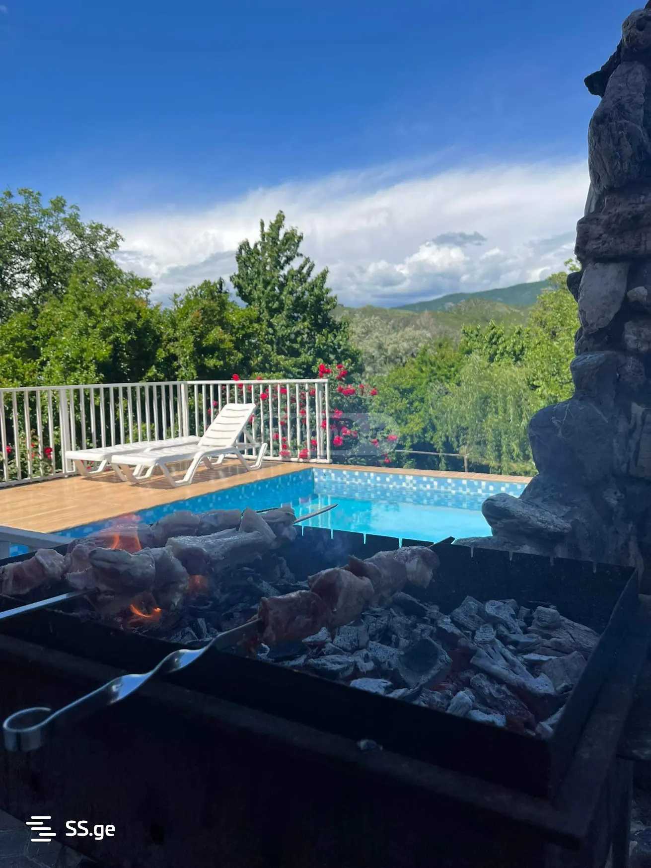 A house with a pool is for rent near Mtskheta. The price depends on the number of clients and the date. It is equipped with necessary inventory. It has two floors, with a beautiful view of nature. The best place to relax.