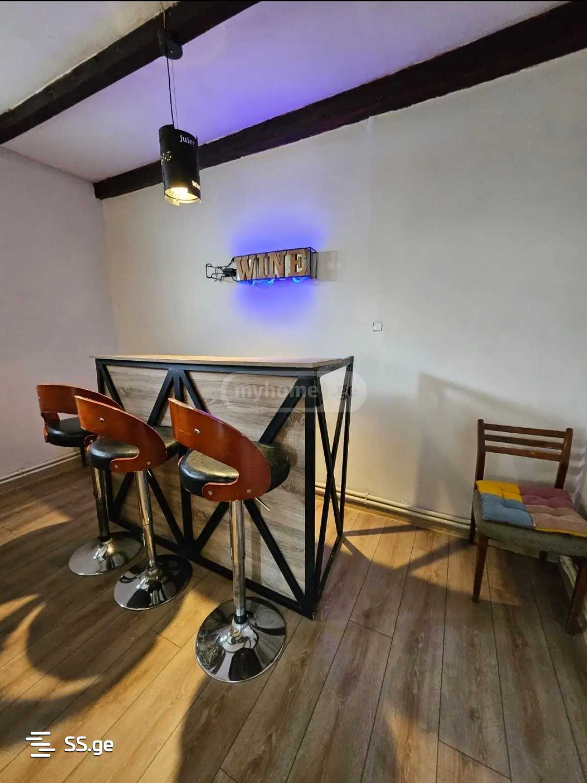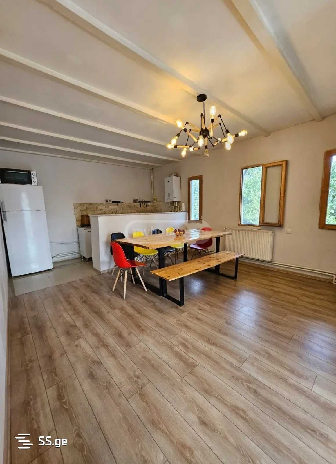 For rent daily! In an easily accessible location in Tskneti, a 2-storey non-standard comfortable house with a 700 sq m yard, high fence, balcony, central and underfloor heating, fireplace, bar, 3 bedrooms, internet, fully furnished. With a comfortable yard, veranda, 2 bathrooms with parking. There is also a new renovation, dishes, washing machine, TV, refrigerator, electric kettle, internet, music center, ironing board, iron, hairdryer, bed linen and towels. Dishwasher.