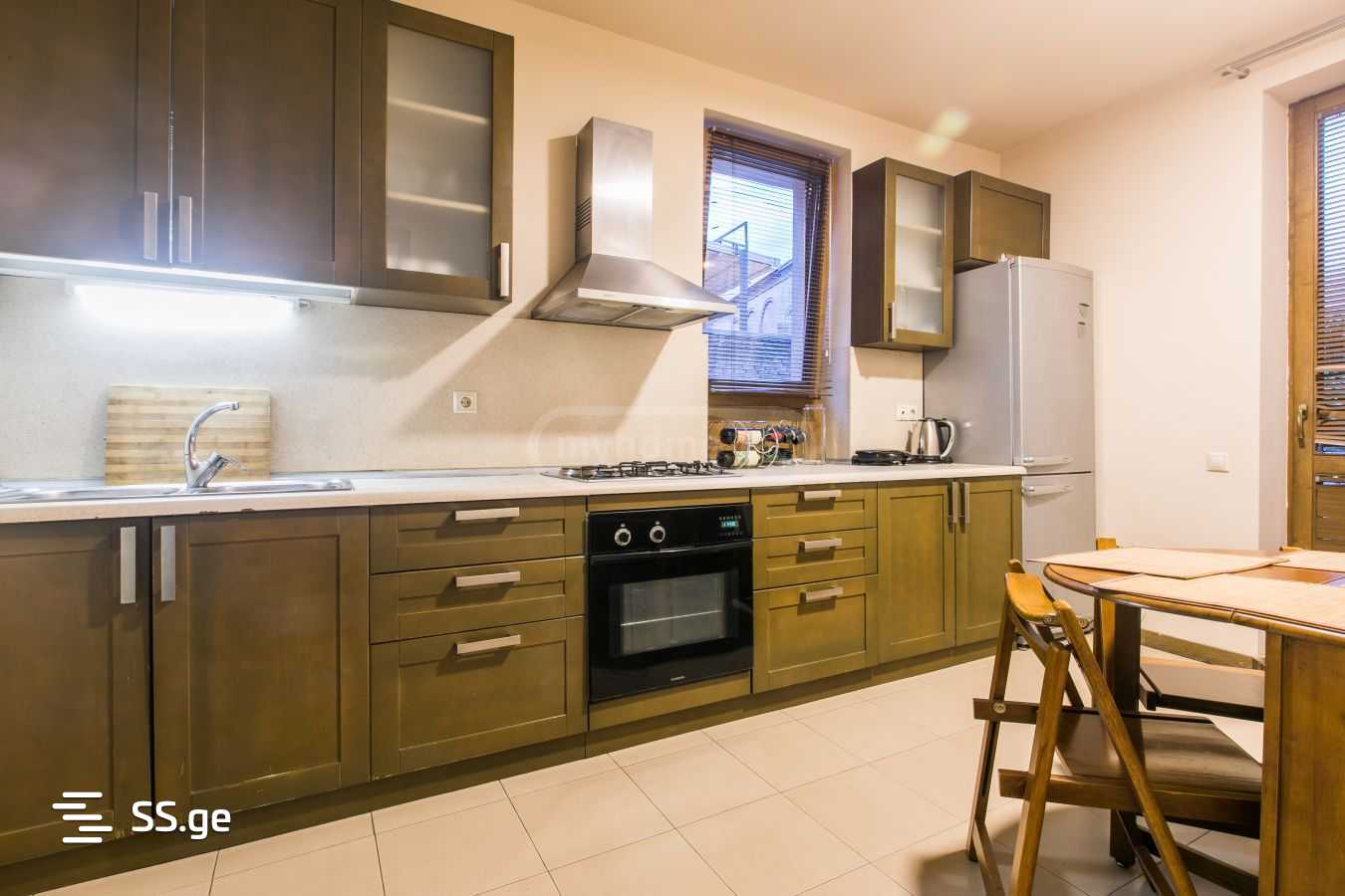 Private house in old Tbilisi, all three floors; Abano Street. The house is located in the center of Abano and Botaniki Streets, entrance from Botaniki Street; The house has three-way lighting, it is an old building, it was restored in the 70s and further restoration was carried out in 2004 and 2012. The house has three floors: three rooms, 2 bedrooms, 1 full bathroom, 1 toilet, 1 fireplace, gas heating, wooden door and window package; oak floor, oak staircase, second and third floor balconies, entrance door with iron wood surface and iron and stained glass decor; on the second floor, two balconies and a fireplace and a large room; kitchen Royal Petroff; Penetrating stair cell from the first to the third floor; kitchen with built-in wooden appliances and exit to the balcony with a view of Metekhi and Mtkvari; Iron staircase railing + stained glass; On the third floor, a window in the ceiling with a view of Narikala. For more information, call me at