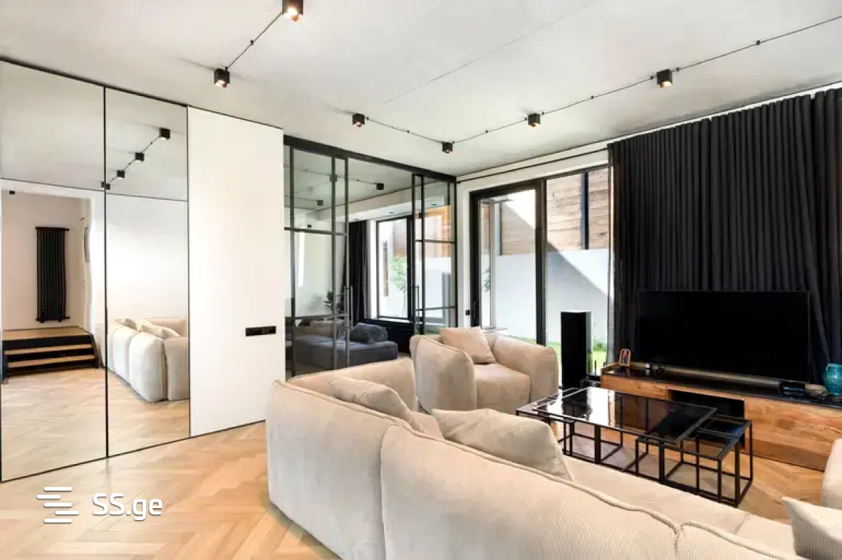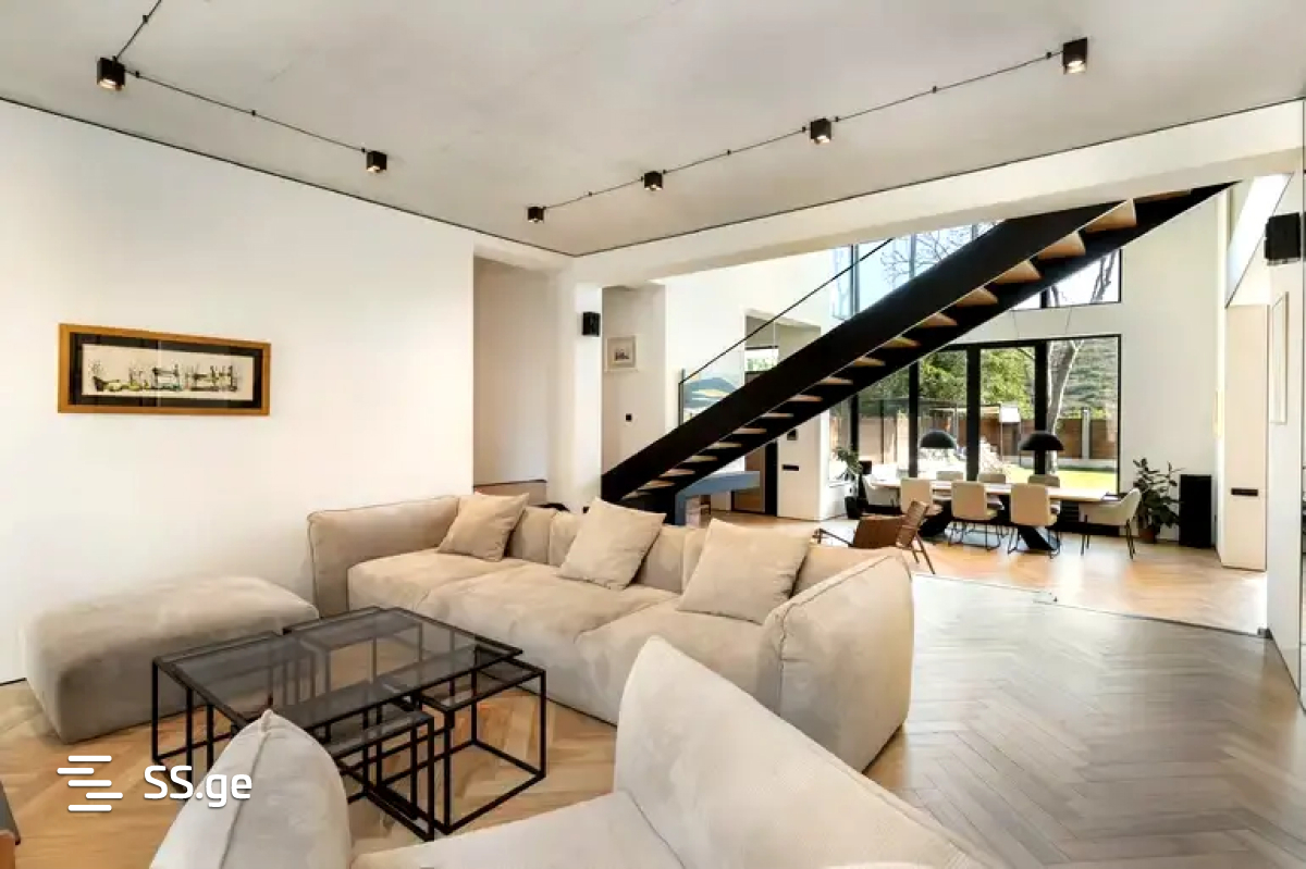 (Auto Translate!) For sale in Vashlijvri turnpike, 4 km from Zhvania square, in a quiet and cozy place, with beautiful views, newly renovated private house 240 m2, total area 330 m2, land plot 550 m2, 3 bedrooms, office, 4 bathrooms, 2 wardrobes, pool with heating), sauna, 3 storage rooms, garage for 2 cars, fully furnished with furniture and appliances.
