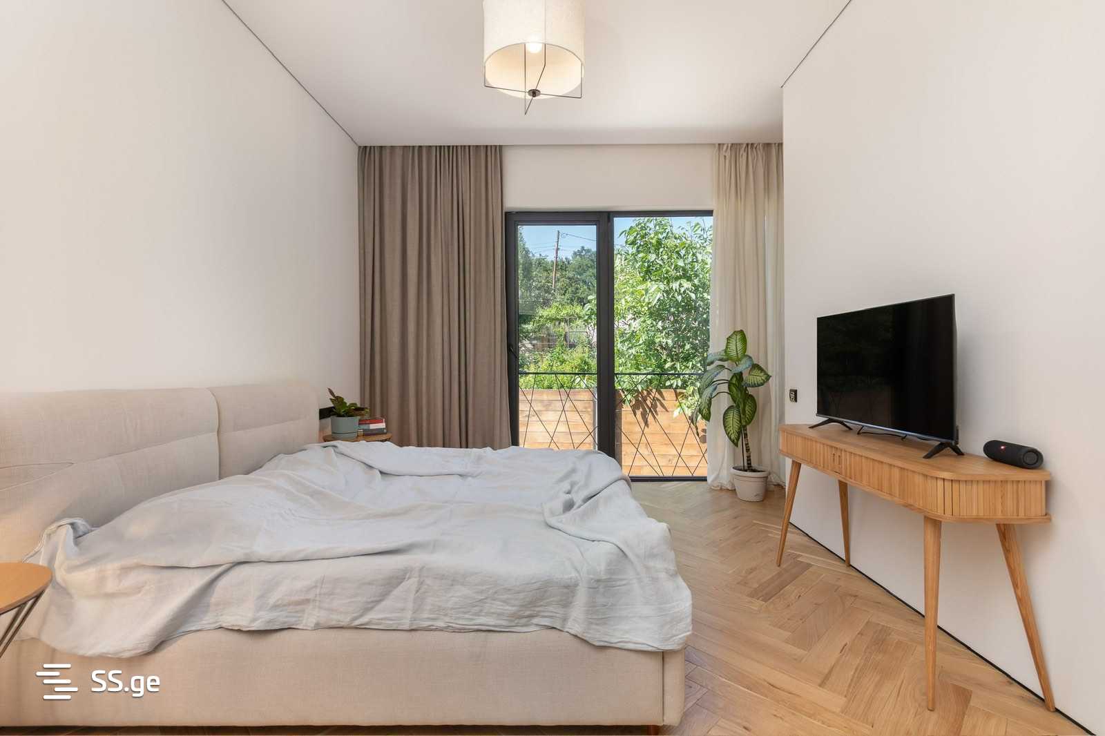 For rent, in the Vashlijvari bend, in a quiet and cozy place, with beautiful views, newly renovated private house 240 m2, total area 330 m2, land plot 550 m2, 3 bedrooms, study, 4 bathrooms, 2 wardrobes, swimming pool (heated), sauna, 3 storage rooms, garage for 2 cars, fully furnished with furniture and appliances,