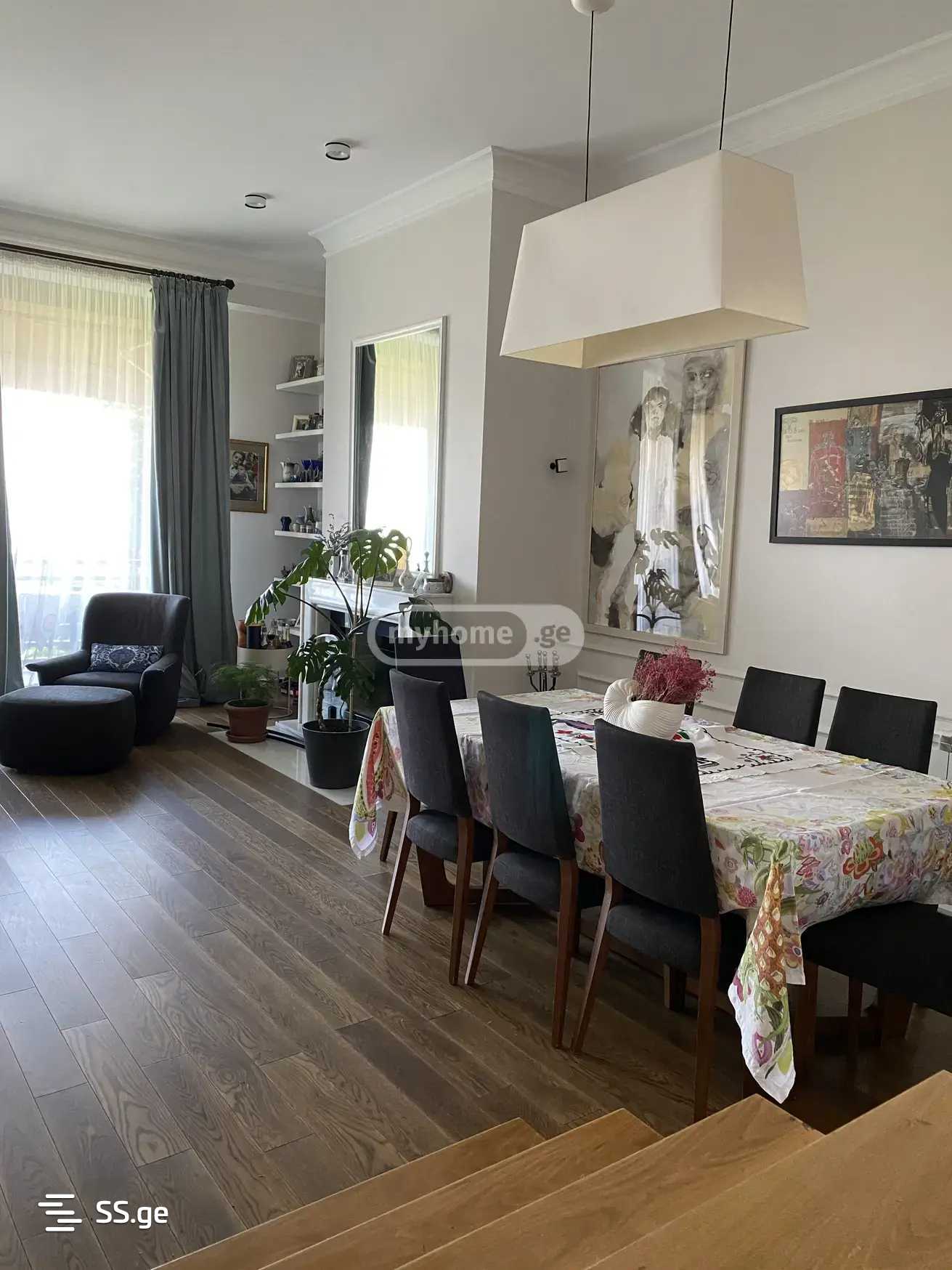 A town house is for rent in Lisi Veranda. The house is 200 square meters, the yard is 50 square meters, the storage basement is 15 square meters and the living room in the basement is 25 square meters. There is one large living room, a separate kitchen, 3 bedrooms, 3 balconies, 1 toilet, 1 bathroom and toilet, and 1 pantry. Lisi Veranda is a green area with several parks, an open swimming pool included in the fee, an Octopus gym+pool, Carrefour, Gipi, Spar, Bon Cafe. There are 7 private schools and kindergartens nearby. This town house is located in the first phase, where there is no construction, in front is an Italian park and views of Tbilisi. You pay the first and last month's rent in advance to schedule a visit, contact me at