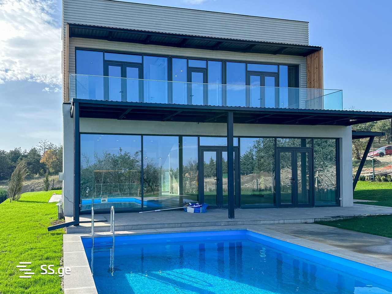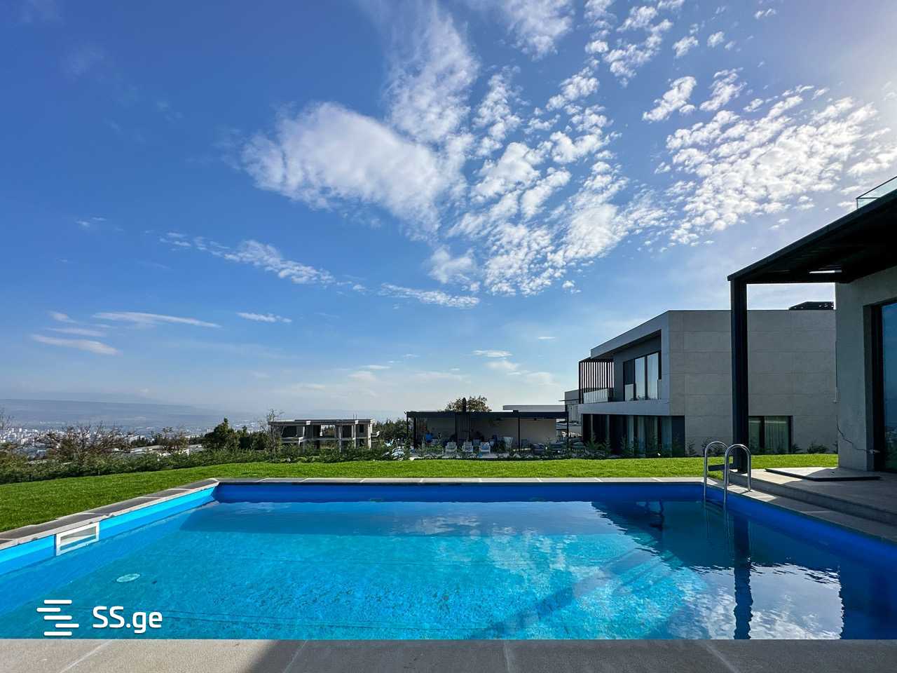 Newly built modern two story private house for rent, 240 sq.m., 4 bedrooms, 1 office (fifth bedroom), 4 full bathrooms, in Golf Club, Tbilisi Hills area. The house is newly renovated, with underfloor heating, 6 air conditioners, swimming pool (heated).