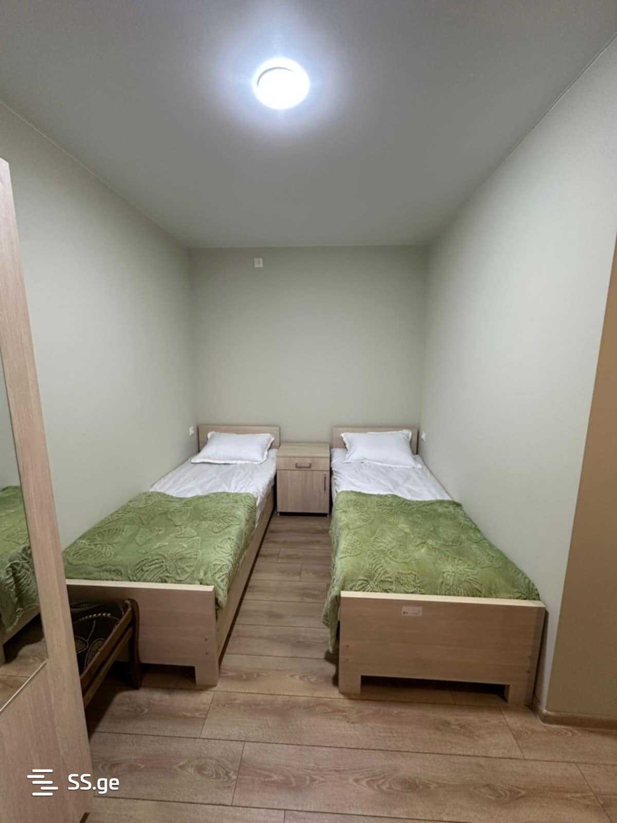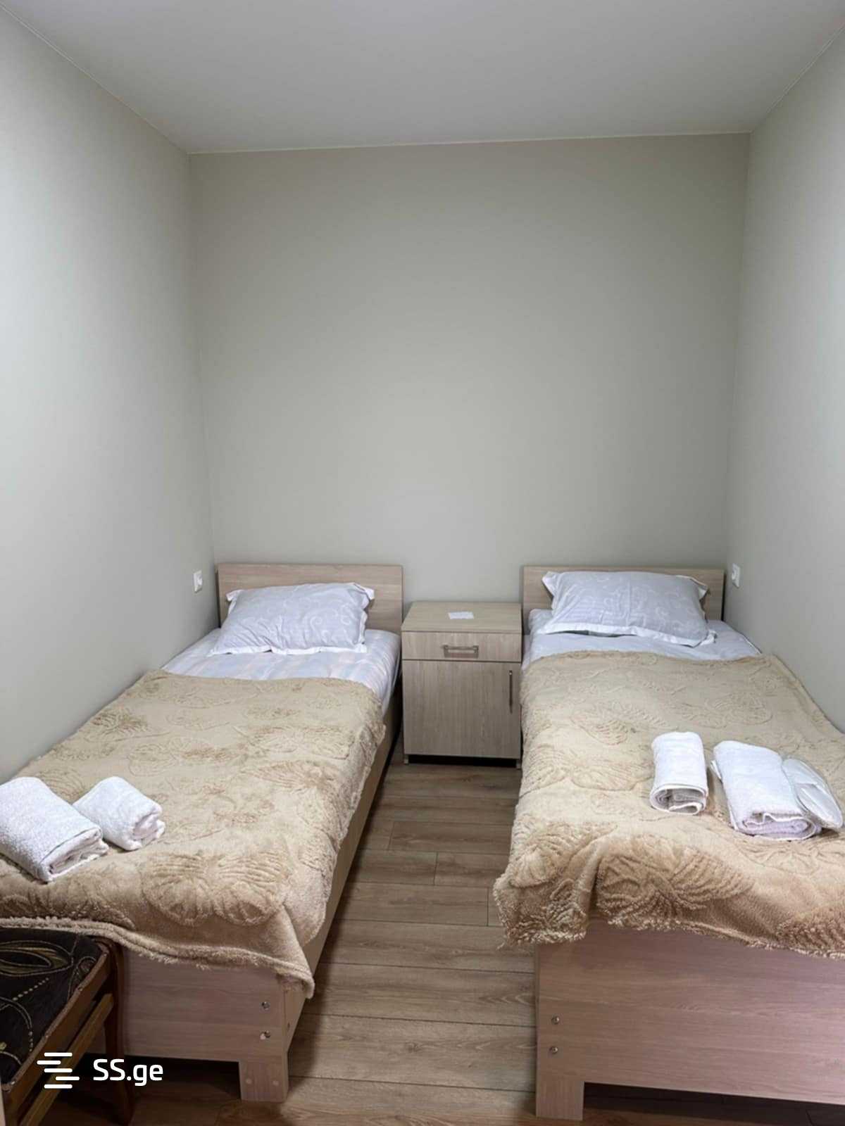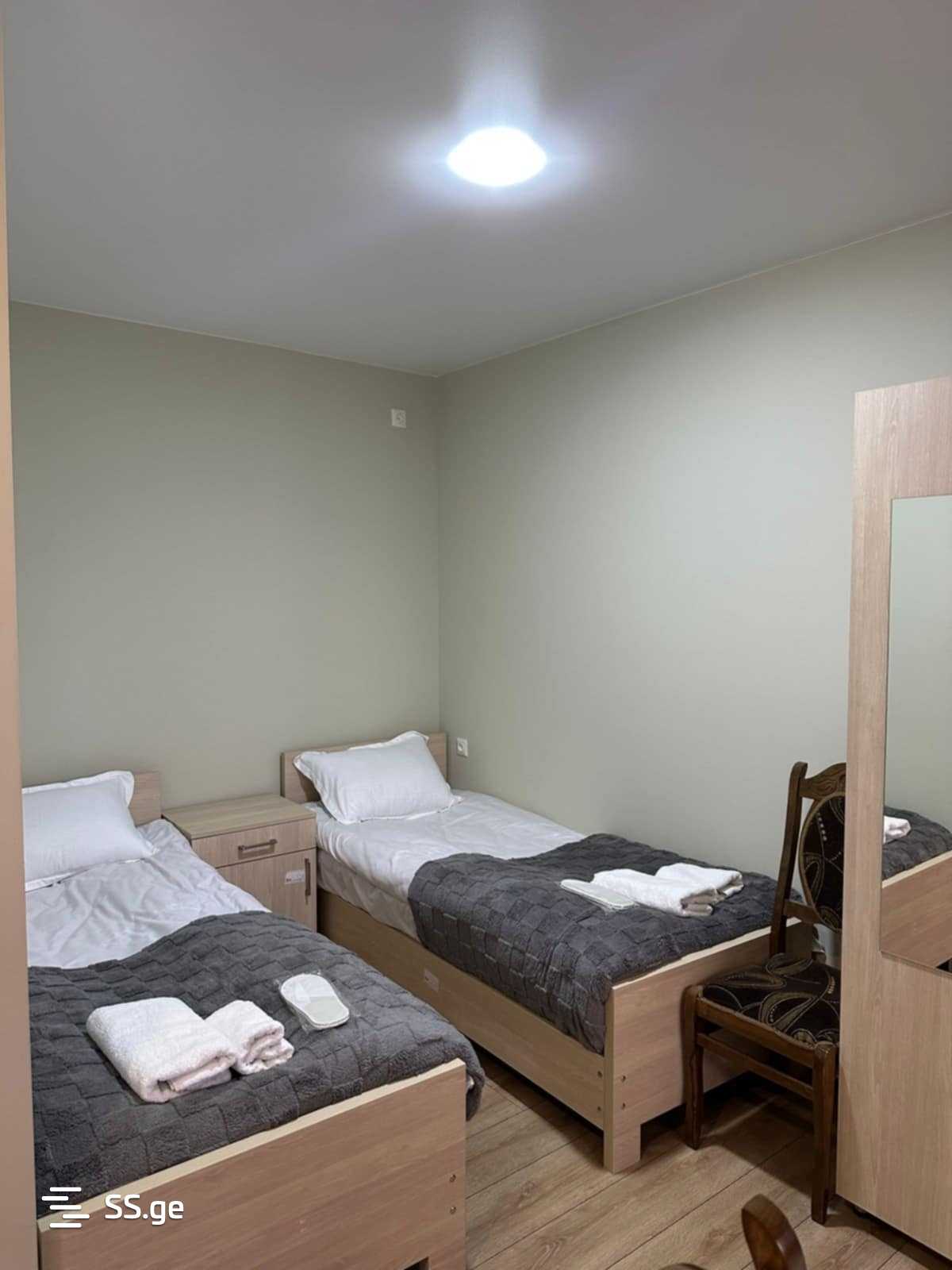 For rent in Kutaisi, a private house with three bedrooms. Each bedroom has its own bathroom. Price is 1500 GEL.