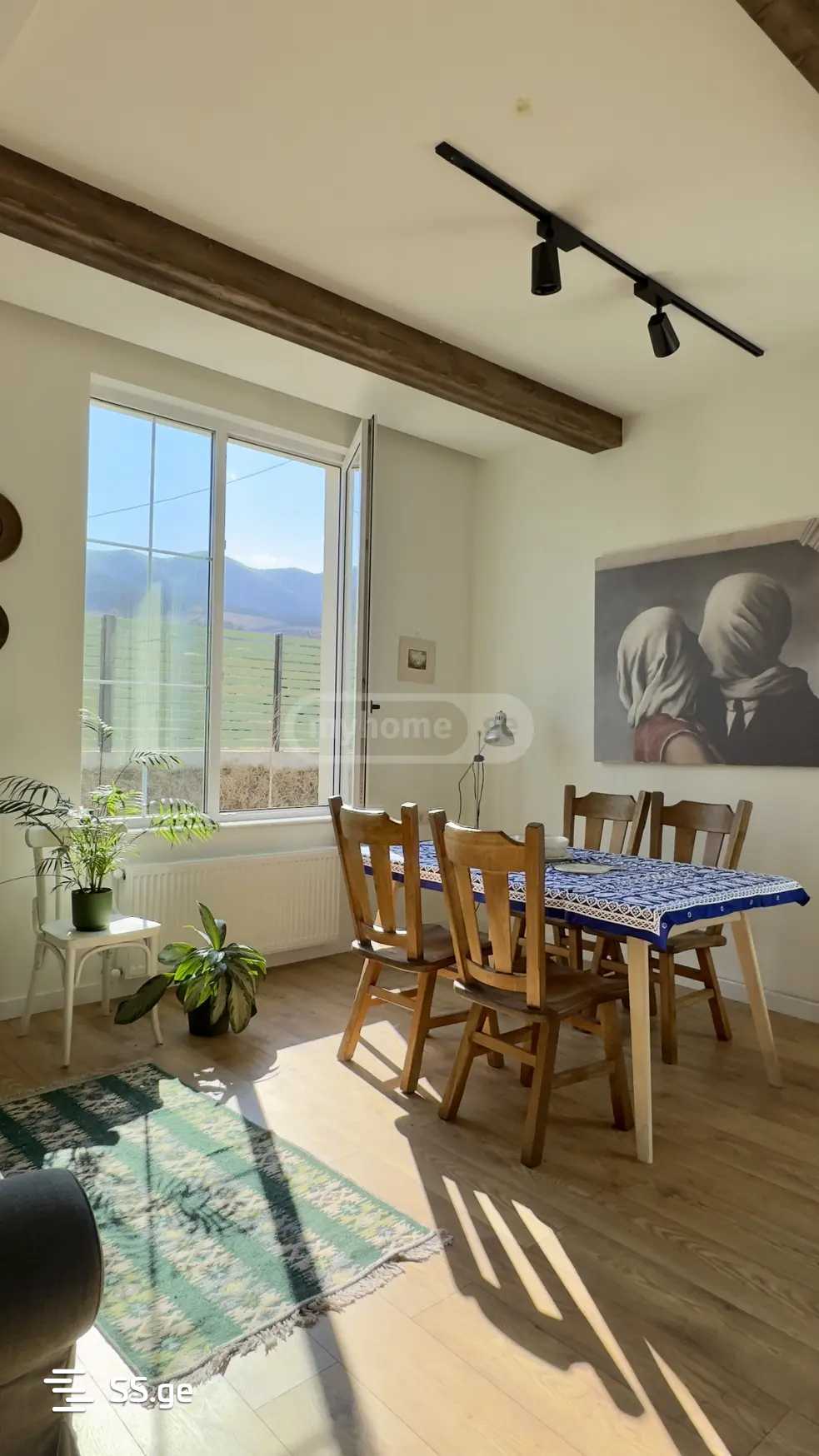 For rent is a newly built house in one of the most attractive places in Saguramo, in Shankevani with beautiful, 360-degree views. The house is 32 km away from Heroes' Square and a 5-minute drive from the center of Saguramo. The house has a unique view of Mount Kazbeg. The house is newly built, 2 stories, with a living area of 250 sq.m. The 2nd floor of the house has 4 bedrooms, 2 bathrooms with showers, and a balcony. On the first floor, there is a fully equipped isolated technical kitchen, a large living room with a functional fireplace, a technical room, 1 bathroom, and a veranda. The yard area is 1500 sq.m.