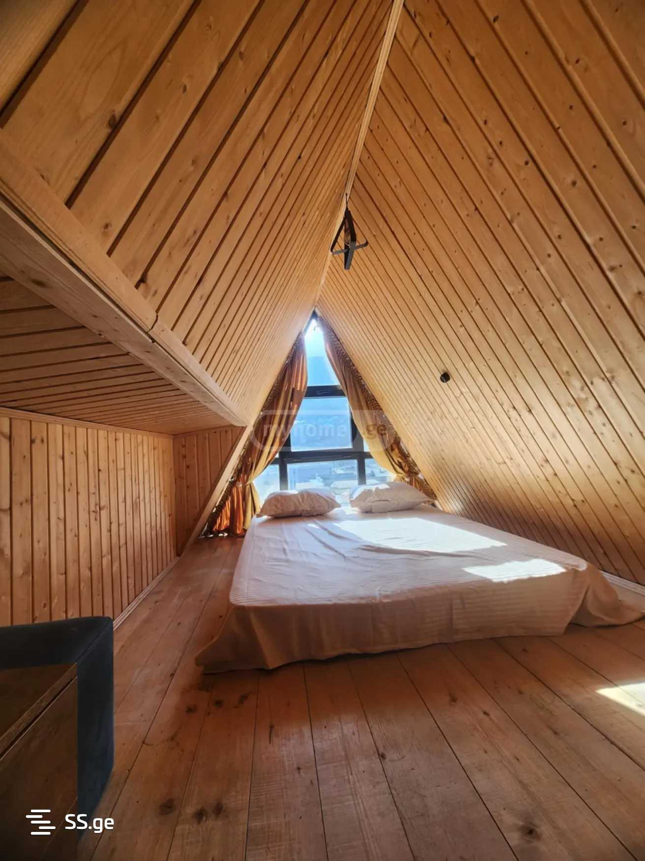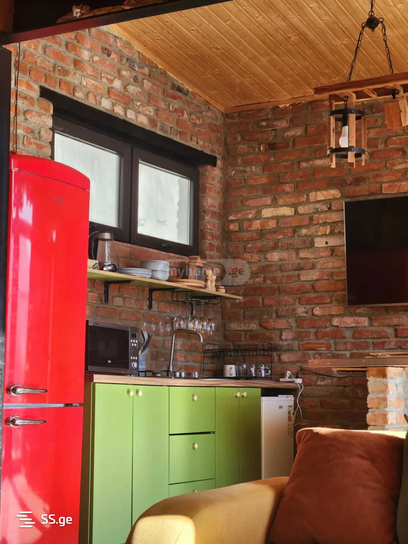 A 2-bedroom newly renovated private house with an attic is for rent in Tskhvarichamia, located 6 km from Tbilisi, featuring modern design, central heating, furniture, and appliances. A yard of 500 square meters - with greenery.