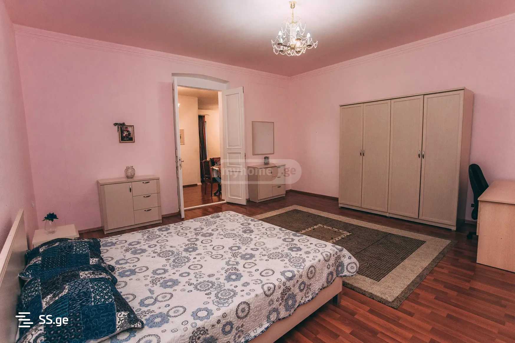 For rent in Vake, on Shatberashvili Street, a private house with a yard. The house is 200 sq.m, which includes 4 bedrooms, a living room, a kitchen, a hall, and a bathroom. The house is equipped with necessary furniture and appliances.