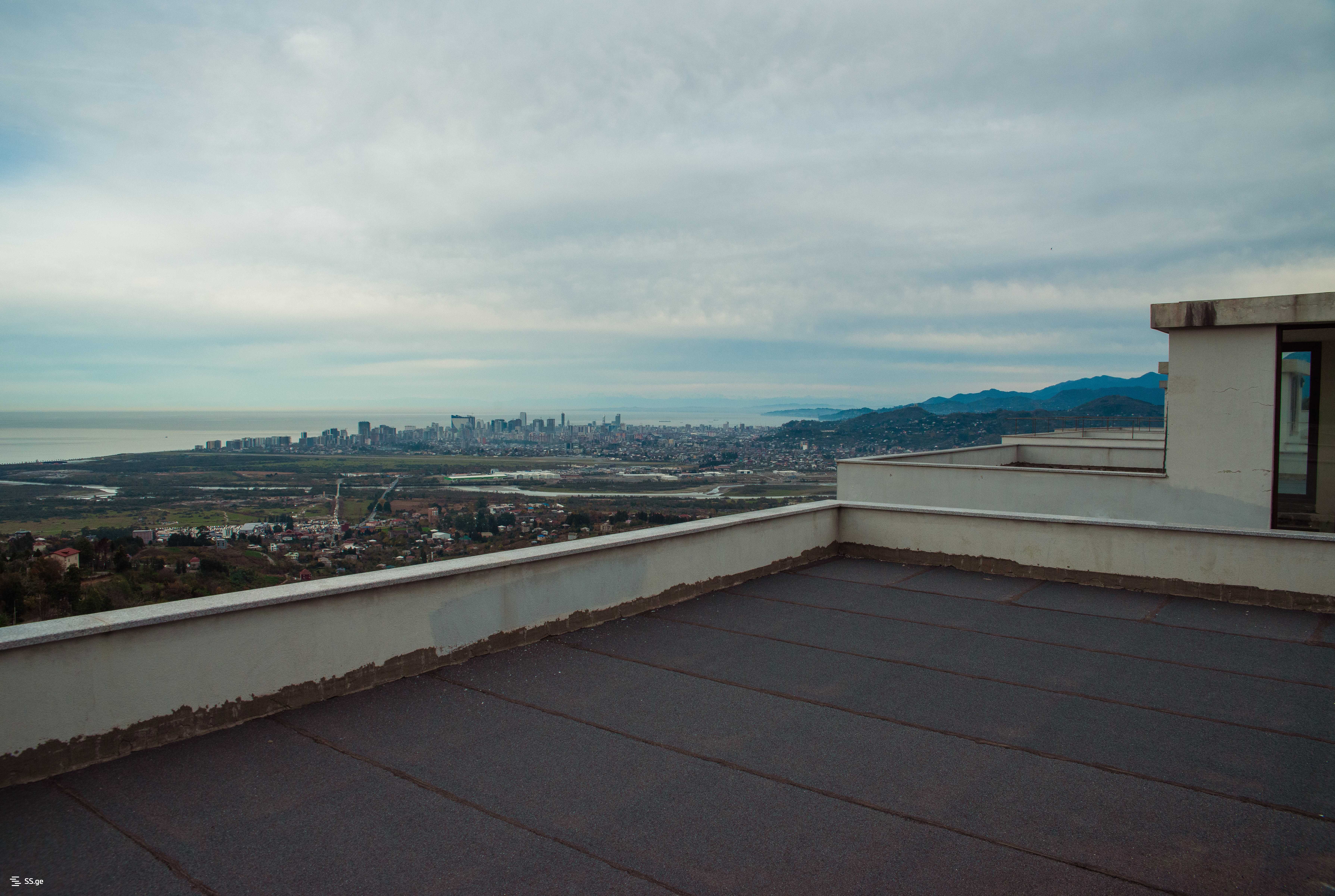 House in Charnali, Avgiya district, house with a wonderful view of Batumi, three-story building area 291 sq.m (garage, convenient layout with panoramic windows, functional terrace), yard area 268 sq.m, white frame, all communications. Cozy residential area and common terrace with sea view 1400 sq.m. Gas is brought to the house. Water is supplied to the boiler and gas stove, electricity is supplied to wet areas, sewage is connected to the city network