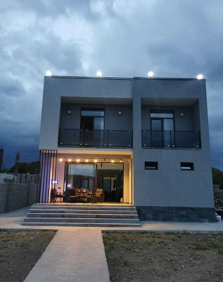 Two-storey party house for rent or sale in Mtskheti district, on top of Nichbis mountain with beautiful views and special design, equipped with all household appliances, indoor and outdoor living spaces. The house is ideal for relaxing and relaxing on weekends. : The house has 5 bedrooms, including one master bedroom. 4 bathrooms, living room with fireplace and separate kitchen