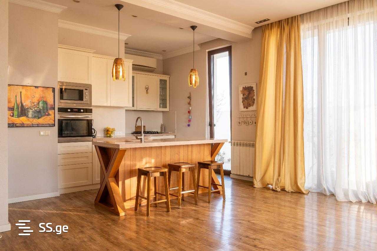 For sale: a private house with three bedrooms, a studio living-kitchen area, in a cozy neighborhood of Tbilisi, with two bathrooms and a garden.