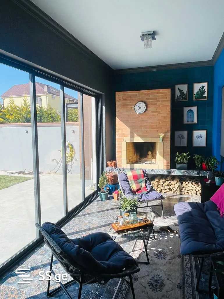 Newly renovated. Three floors. Pool (bathtub). Ceiling height 3.1 meters, 5 bedrooms, living room, kitchen, 4 bathrooms, 2 storage rooms, 2 balconies, veranda, with fireplace. 120 square meters of free space on the third floor.