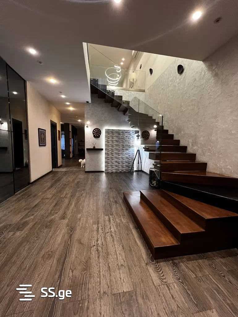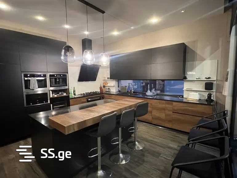 A house is for sale in Digomi 7, in an ecologically clean and quiet location. 📍 The house area is 346 sq.m. 📍 The yard area is 560 sq.m. 📍 4 master bedrooms, each with its own wardrobe and bathroom. 📍 1st floor: hall, 1 master bedroom, auxiliary/laundry room with built-in shelves up to the ceiling and a faucet, bathroom. 📍 Kitchen and living room in a studio style, bathroom and terrace leading to the backyard, where there is a separate building with boilers and a water tank. 📍 2nd floor: large hall/2nd living room and 3 master bedrooms, all with balconies. The house is built and equipped with high-quality appliances and plumbing: Villeroy & Boch, Teka, vinyl flooring (1st floor with underfloor heating), Spanish tiles, aluminum windows. The house is sold with furniture and appliances. The price can be negotiated on-site.