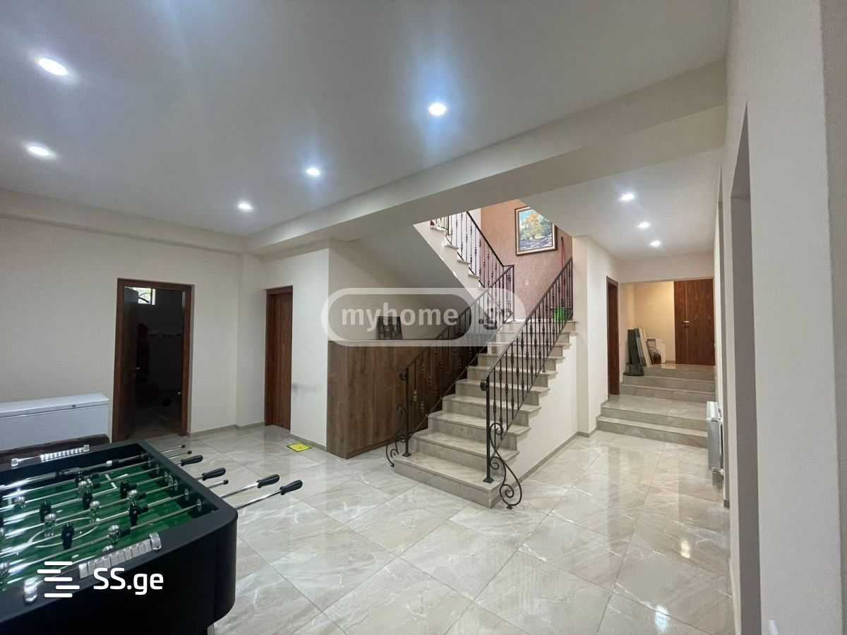 Private house for sale at Digomi 9, near Tbilisi Mall. 3 floors, exercise room on the 0th floor, pantry, technical room, cinema, fireplace room, garage for 4 cars. On the 1st floor, a large room, a kitchen, a bedroom (with its own bathroom) and a veranda, a shared bathroom, a study, an exit from the kitchen to a large veranda, an indoor pool, an exit from the large room to an open veranda. 2nd floor, 4 bedrooms, (2 master bedrooms), 2 bedrooms have their own bathroom and another bathroom (laundry), 3 bedrooms have small balconies, 4th bedroom has a large veranda.