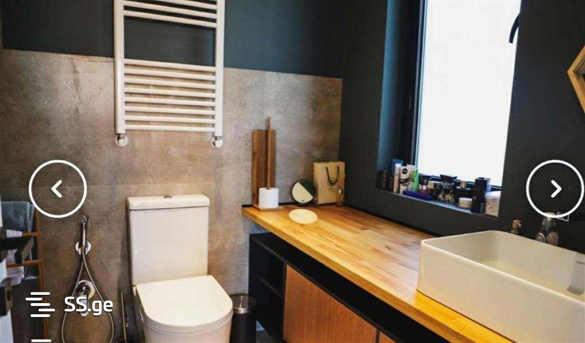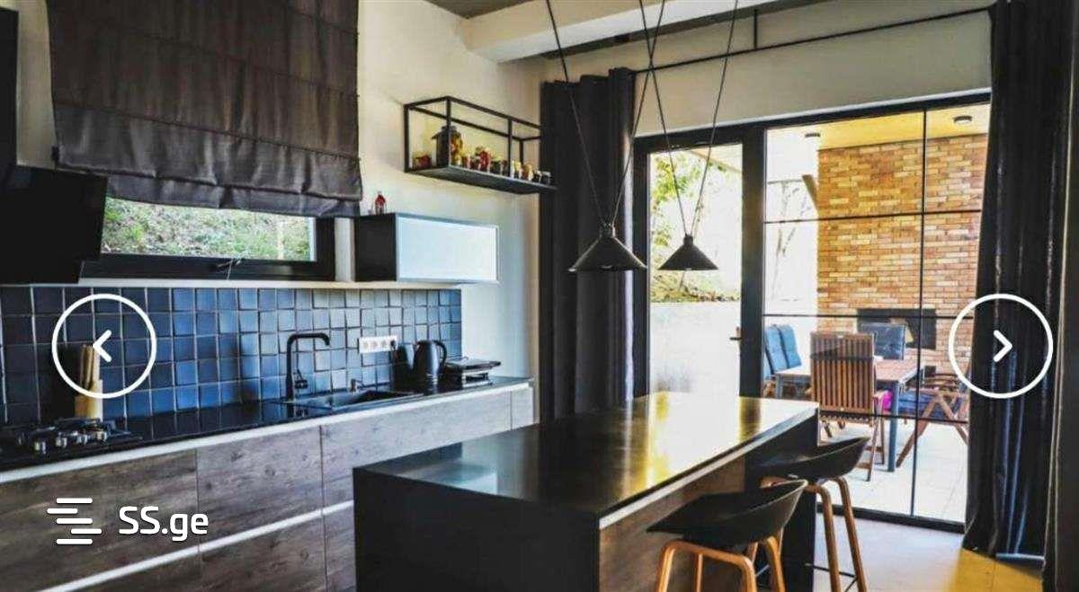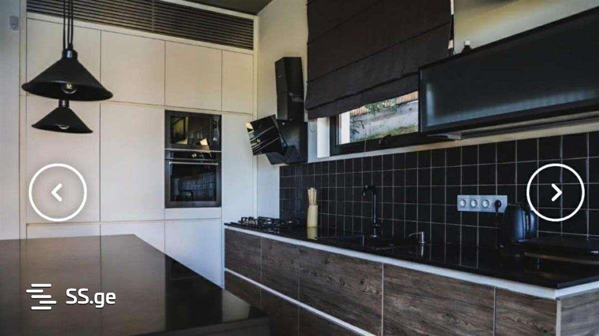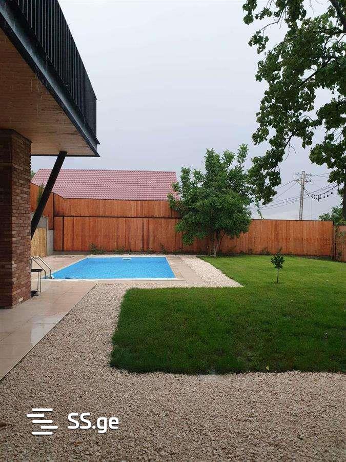 in Dighomi village. Fully renovated in a modern style, stained glass house with furniture and built-in appliances. Underfloor heating system, high quality aluminum windows. The house consists of 2 floors and has 3 bedrooms, one of them is the master bedroom with its own bathroom and the other 2 bedrooms also have a separate bathroom. Yard planted with trees, summer terrace and pool, garage for two cars.