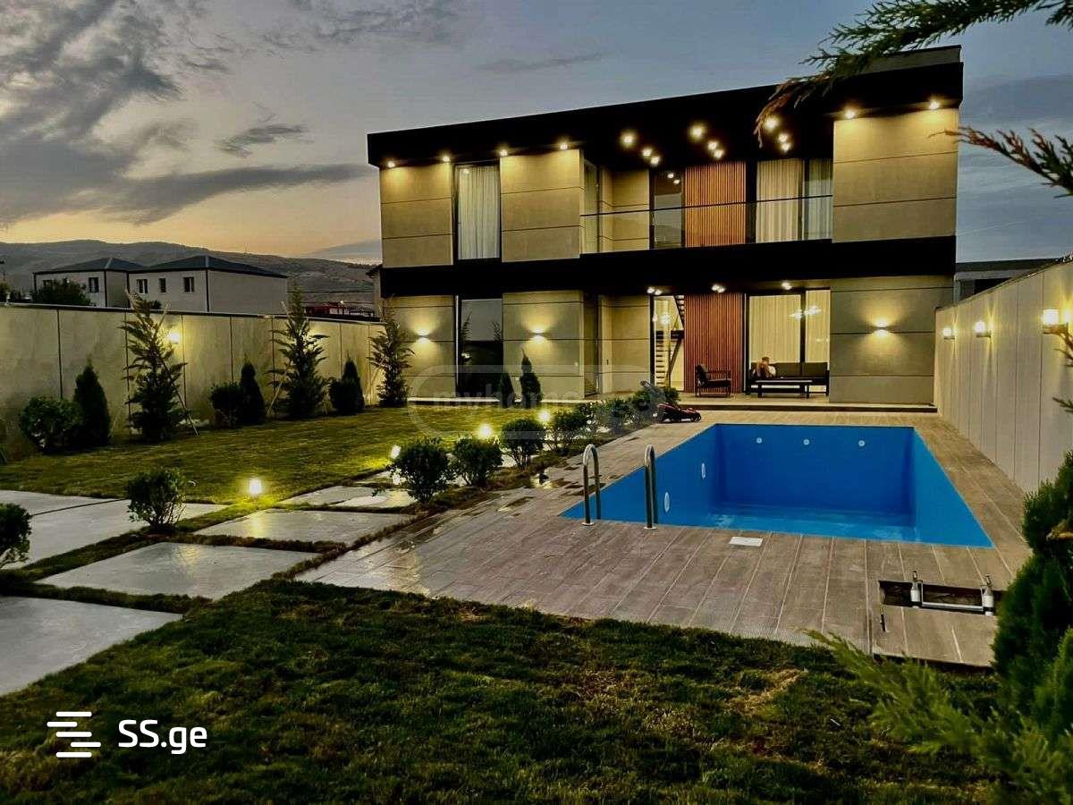 For sale in Didi Dighomi, a modern 2-storey house with beautiful interior and exterior, no one has lived in the house, there are 6 rooms in the house, 4 bedrooms have their own wardrobes and 2 bedrooms have their own bathrooms, with new furniture and appliances. The area of the house is 300 sq.m. and the plot is 570 sq.m. with a green yard and a pool.