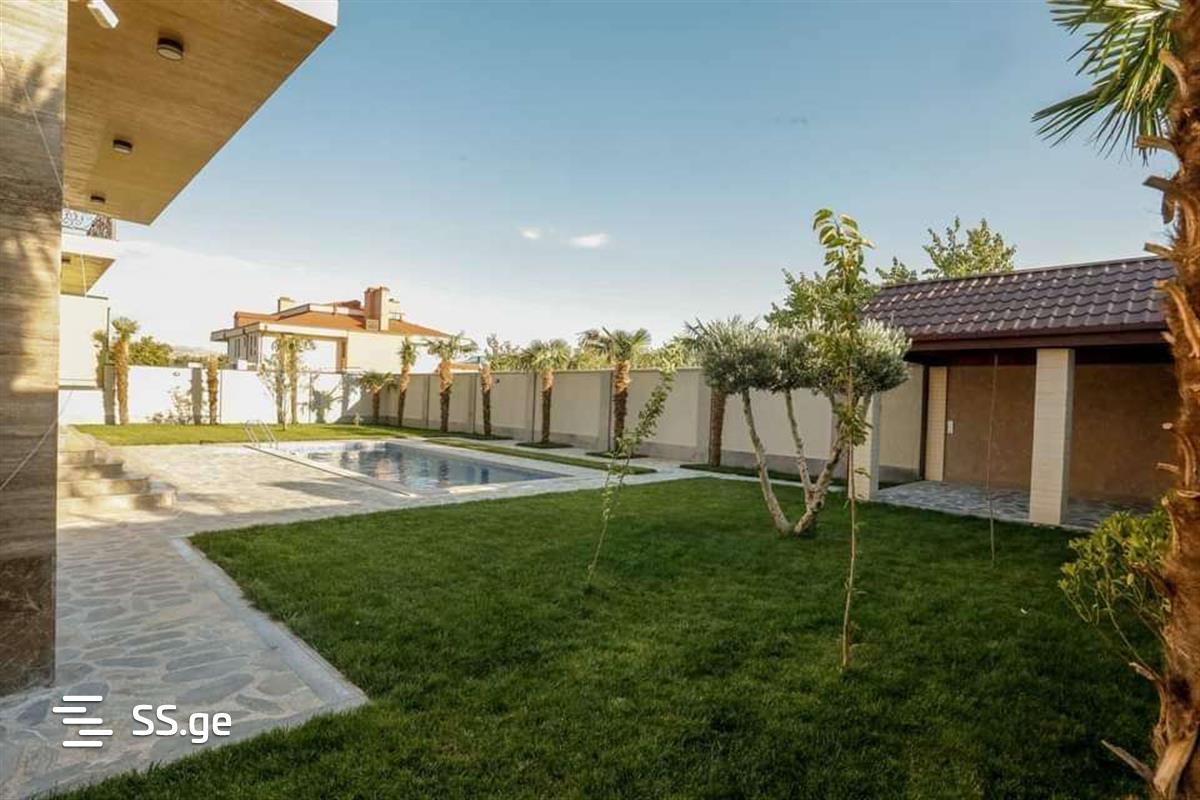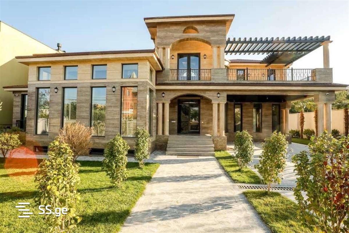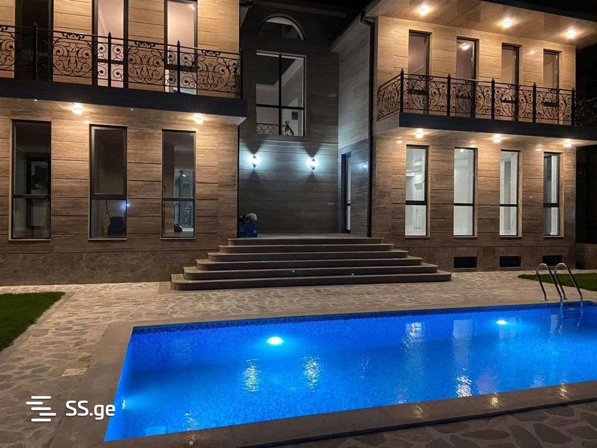 3-storey newly renovated private house for sale in Didi Dighom, on Khataeti Street, Toyota Center near Tbilisi, newly built, non-agricultural plot of land, total area 725 sq.m., yard area 1100 sq.m., minus one floor, cellar, fireplace, kitchen, all bedrooms have own sv. point. On the first floor there is a large living room and kitchen, one bedroom and one office, on the second floor there are 5 bedrooms and a large terrace. In the yard there is a pool, fanchaturi, fireplace, unique plants, the house is equipped with an alarm system and surveillance cameras, a sound system, and underfloor heating.