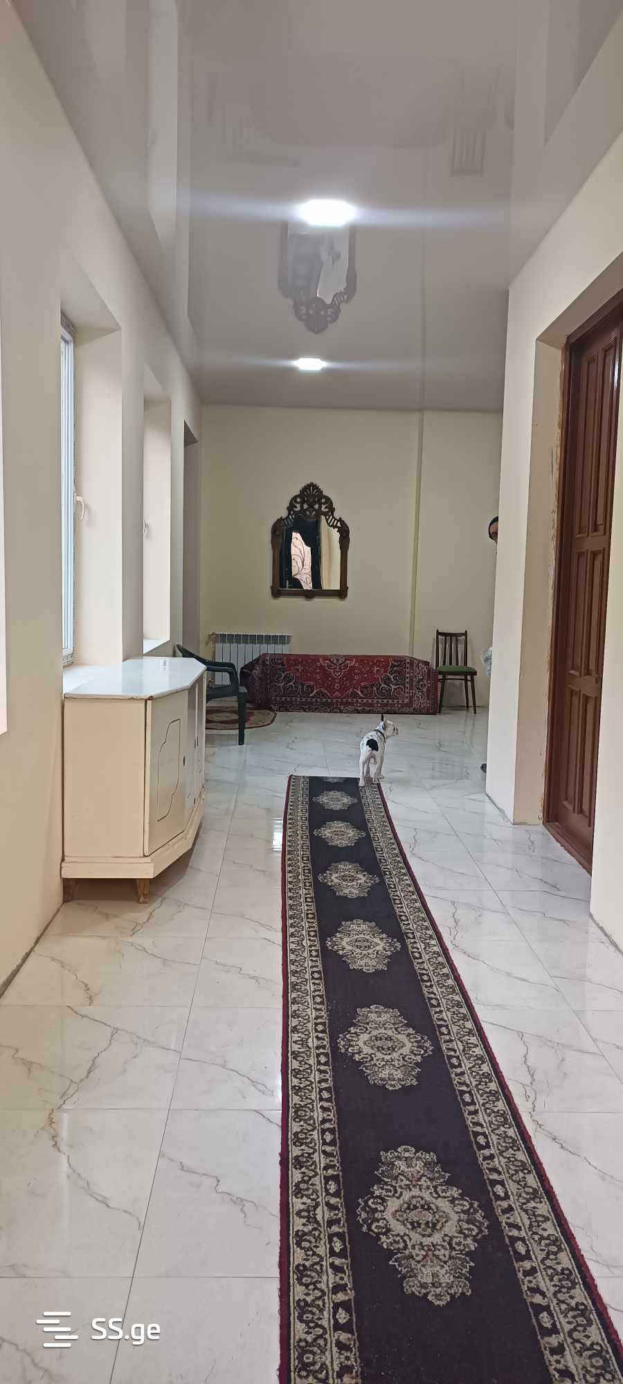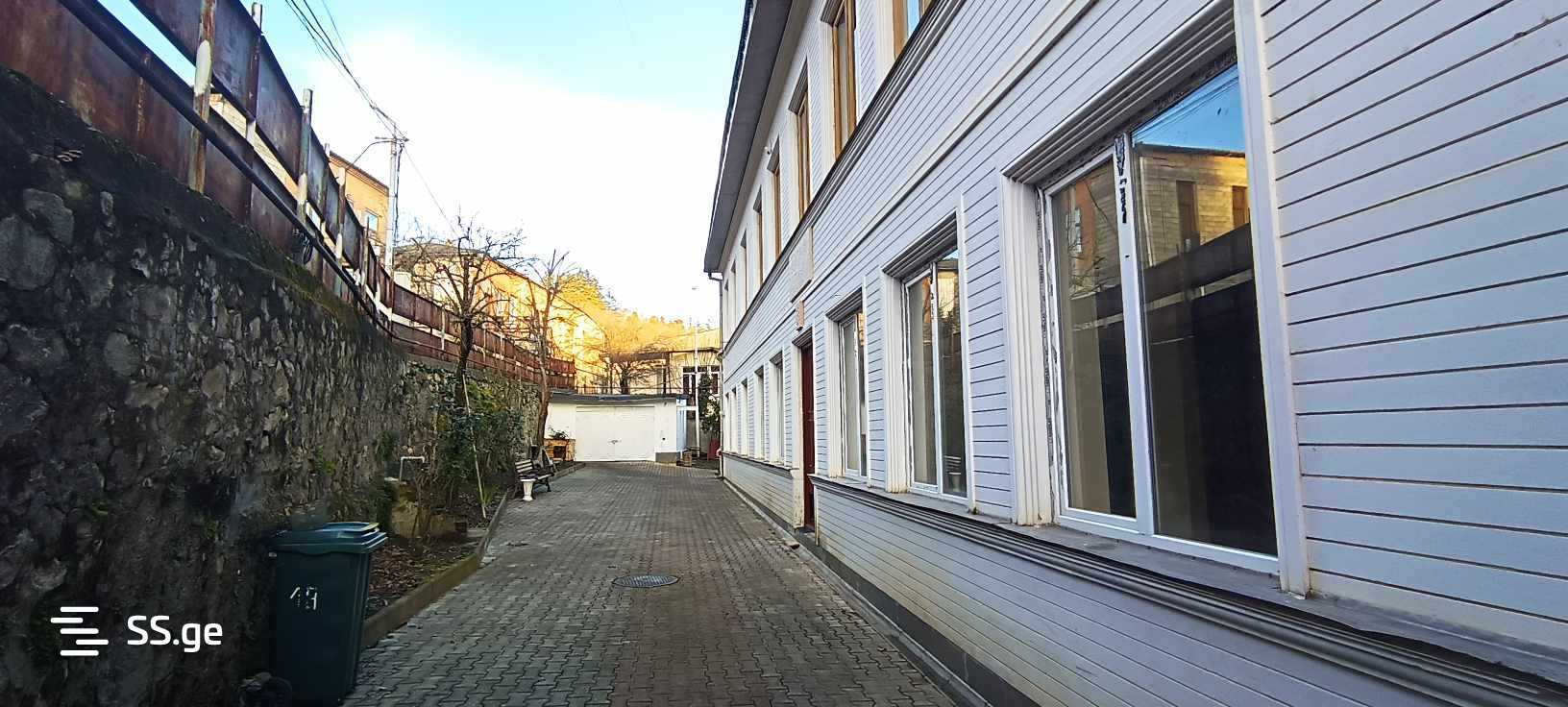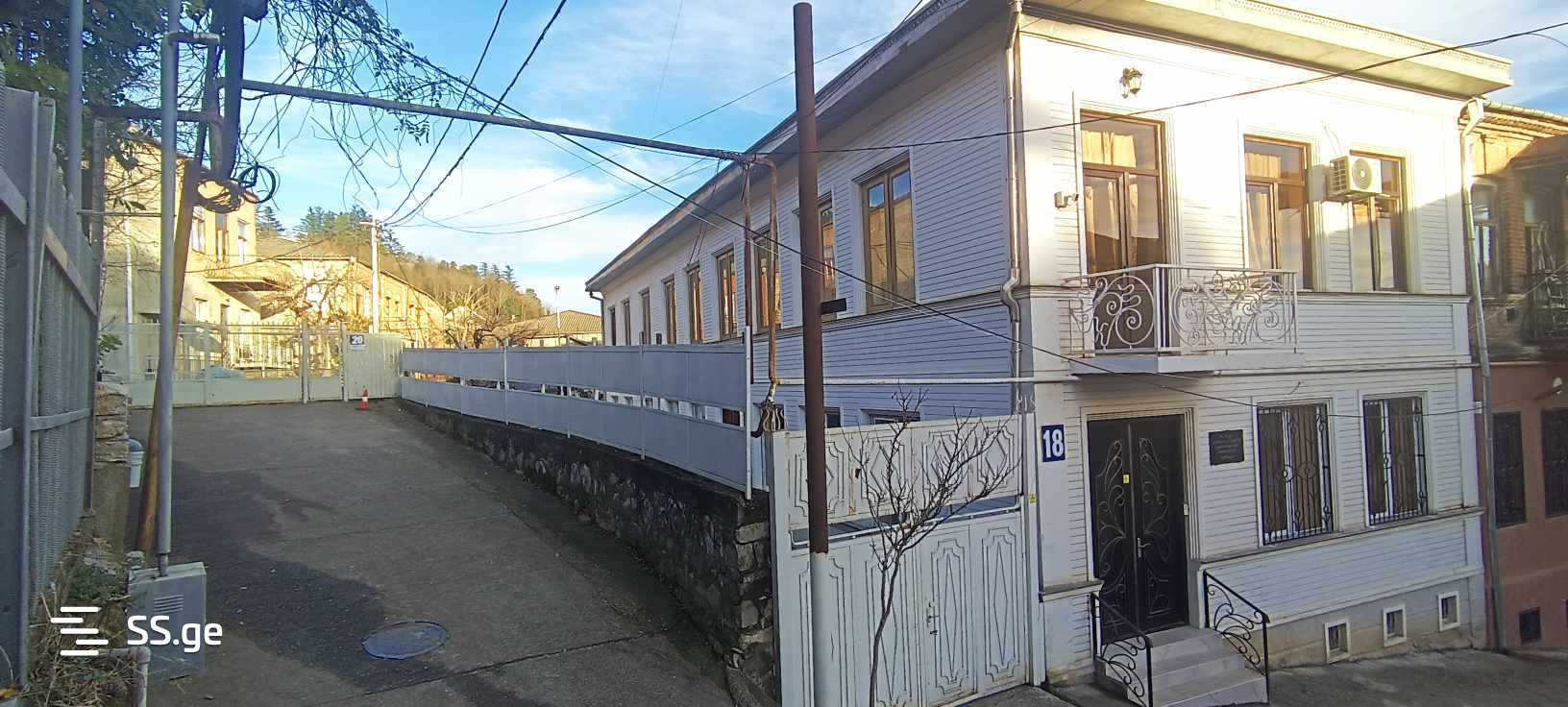 A 2-storey house is for sale in Kutaisi on Rustaveli Street, the area of the house is: 370 sq.m. Yard: 514 sq.m. There is a garage in the yard, a small balcony at the front of the house, and a large veranda at the back. On the first floor there is a corridor, 1 large room, the second large room with a fireplace, the third small room, 2 bathrooms. We climb the internal staircase to the second floor, where there is a large voyeur, 3 bedrooms, a kitchen and 2 bathrooms. The house is fully renovated, central heating system is installed, parquet floors in some rooms, laminate in one room, natural wood in the fireplace room, iron bars on all windows.