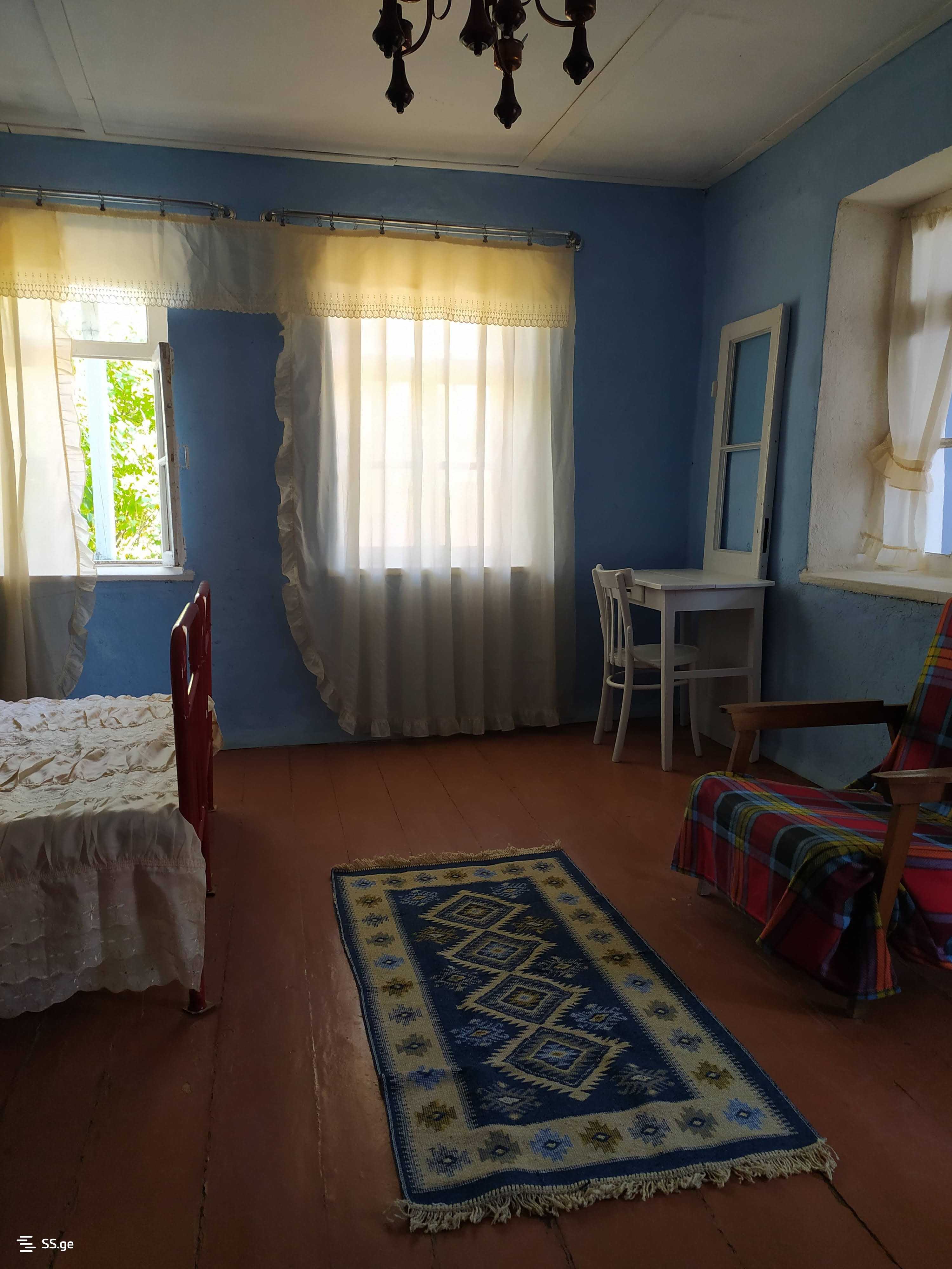 For sale: an old two-story house built in ILIATS'MINDI, 8 km from Sighnaghi. It has permanent cold and hot water, natural gas, all living conditions, and a 1250 m² land plot with various fruits. There are auxiliary buildings in the yard. Almost everything remains in the house.