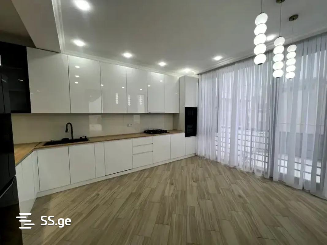 (Auto Translate!) 500 sq m house for sale in Ivertubani, with a basement and heated pool, living room, kitchen, one bedroom on the first floor. Bathroom with jacuzzi and kitchen appliances (refrigerator, gas, hood, dishwasher, microwave oven and oven) First floor with underfloor heating, second floor 4 bedrooms with three bathrooms (two of them are master bedrooms), separate laundry room with washing machine and communication room, large lounge in the basement , where a kitchen with appliances, a bathroom, a cinema room and a large storage room are installed, the basement can be accessed both from the inside and from the yard. Video surveillance cameras are installed, the green cover in the yard is watered by computer systems, the pool is heated even in winter.