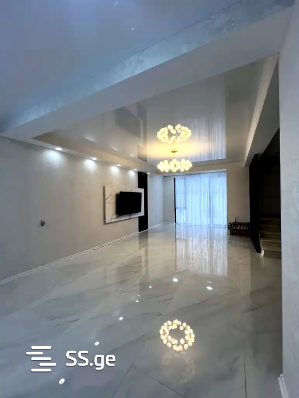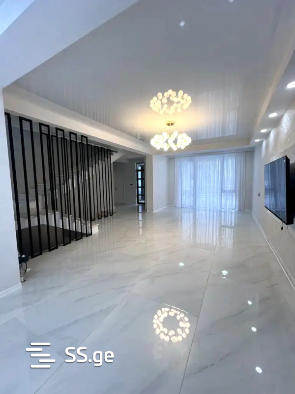 (Auto Translate!) 500 sq m house for sale in Ivertubani, with a basement and heated pool, living room, kitchen, one bedroom on the first floor. Bathroom with jacuzzi and kitchen appliances (refrigerator, gas, hood, dishwasher, microwave oven and oven) First floor with underfloor heating, second floor 4 bedrooms with three bathrooms (two of them are master bedrooms), separate laundry room with washing machine and communication room, large lounge in the basement , where a kitchen with appliances, a bathroom, a cinema room and a large storage room are installed, the basement can be accessed both from the inside and from the yard. Video surveillance cameras are installed, the green cover in the yard is watered by computer systems, the pool is heated even in winter.