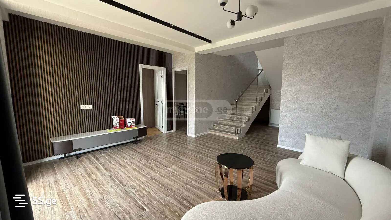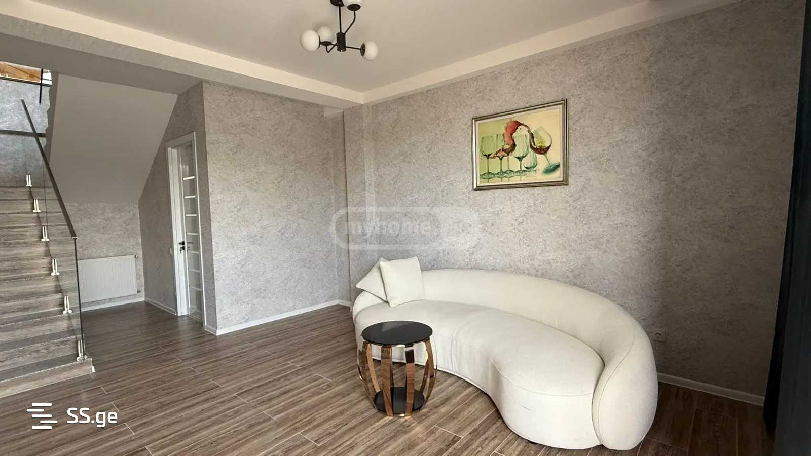 A 2-storey, newly renovated house with furniture and appliances is for sale in the village of Jighauri in Saguramo. The house has a 400 square meter well-maintained yard with fruit trees, 3 bedrooms, 2 bathrooms, 2 living rooms, a kitchen, and a yard storage.