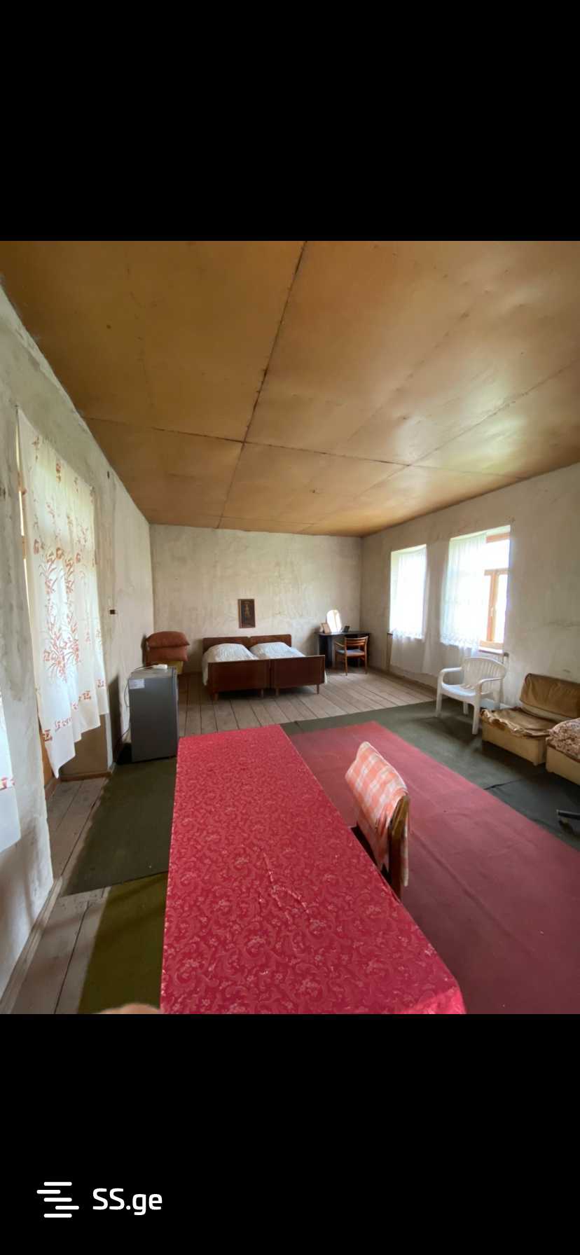 Source code. 30/35 minutes from Tbilisi. 2-story capital house; water, gas, electricity, internet; 11-meter well; 2 balconies; fireplace; vineyard gazebo; fruit trees. (apple, grapes, sour plum, fig) Asphalt road throughout the settlement; price $20,000