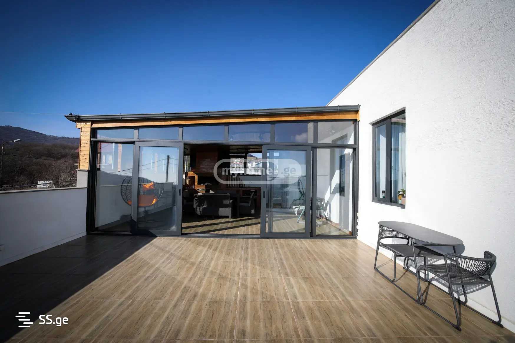 The house is built on a non-agricultural plot! The house was not built for sale and uses the highest quality materials!!! The total construction area is 429.3 square meters, of which the upper terrace is 96 square meters, and the lower terrace is 51 square meters. It is constructed with double (two-layer) ceramic blocks, has been glazed in Munich and retains both cold and heat very well. Two heating boilers and a heater are installed, and underfloor heating has been done. There is a water reservoir. In case of power outage, the generator turns on automatically. The gates and garage doors open with a remote control. The garage is designed for 2 cars, and there is an entrance door from the garage into the house. The internal staircase is quite wide and comfortable, decorated with marble tiles. The lower floor contains a living room, 3 bedrooms, and a bathroom. The second floor features a living room with a kitchen, a master bedroom, a pantry, a bathroom, and a terrace. The living room has a natural gas fireplace, controlled by remote. Half of the terrace is fitted with a glass roof with a barbecue wall overlooking Mount Korogli. The house is built in a new settlement located at the beginning of Kiketi, and the area is not damp or moldy. I can arrange a conversation with the architect, designer, and construction manager for any details related to the construction. An irrigation system has been installed in the yard.