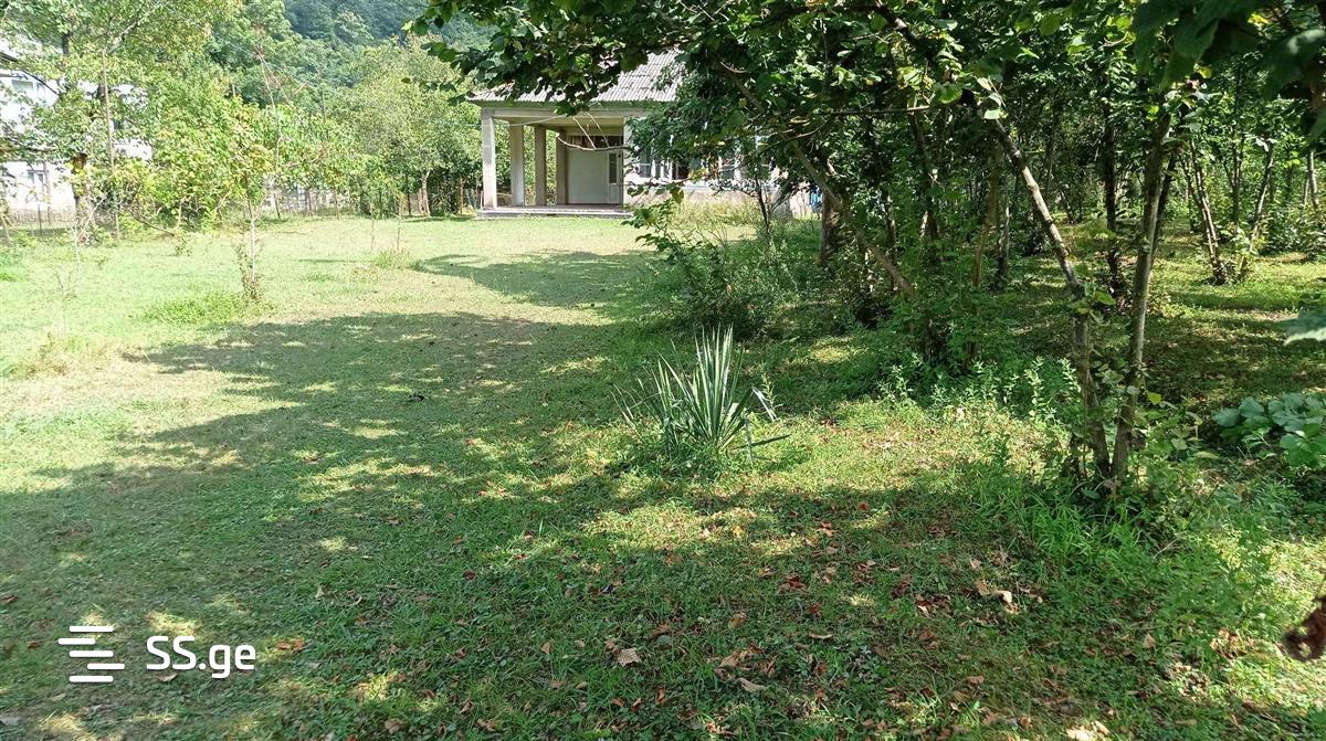 A plot of land for sale in the village of Likhauri, area of 4205 sq.m. There are two buildings in the yard, one 153 sq.m., the other 65 sq.m. It is habitable. A river flows near the yard, where there is a swimming area, and there are many hotels and restaurants around. resort area. Ideal for hotel/residential use. A new paved road leads to the end. Water included, e. Energy, natural gas by subscription. There are mixed fruit trees, a nut grove. Decorative trees and plants. The yard is perfectly straight. with a vineyard shed.