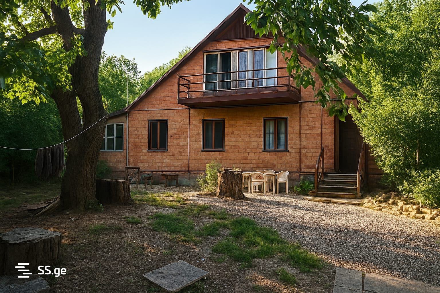 A private house is for sale with a large green yard.