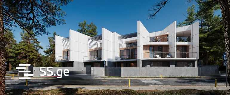 Each house has an individual yard and a pool. Built with the highest quality materials. The facade is insulated with stone wool and finished with Alucobond material. Compact laminate details were also used for the facade.