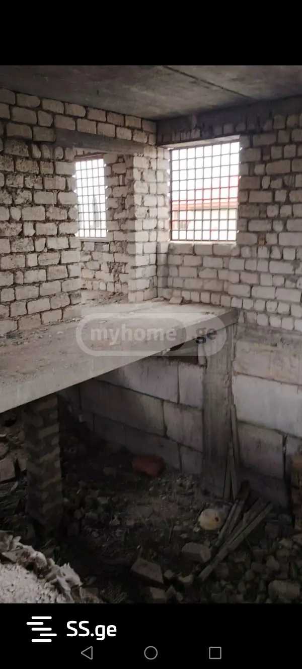 House for sale in Mukhrani. 2 kilometers from the Mukhrani fortress. The house is unfinished. Communications are nearby. The yard area is 3003 sq.m. The total area of the building is 607.5 sq.m. Each floor is 202.5 sq.m. The basement is a half basement. The building is very solidly built, with a high foundation and raised base. Concrete material has been used, while blocks and bricks are used on the walls.