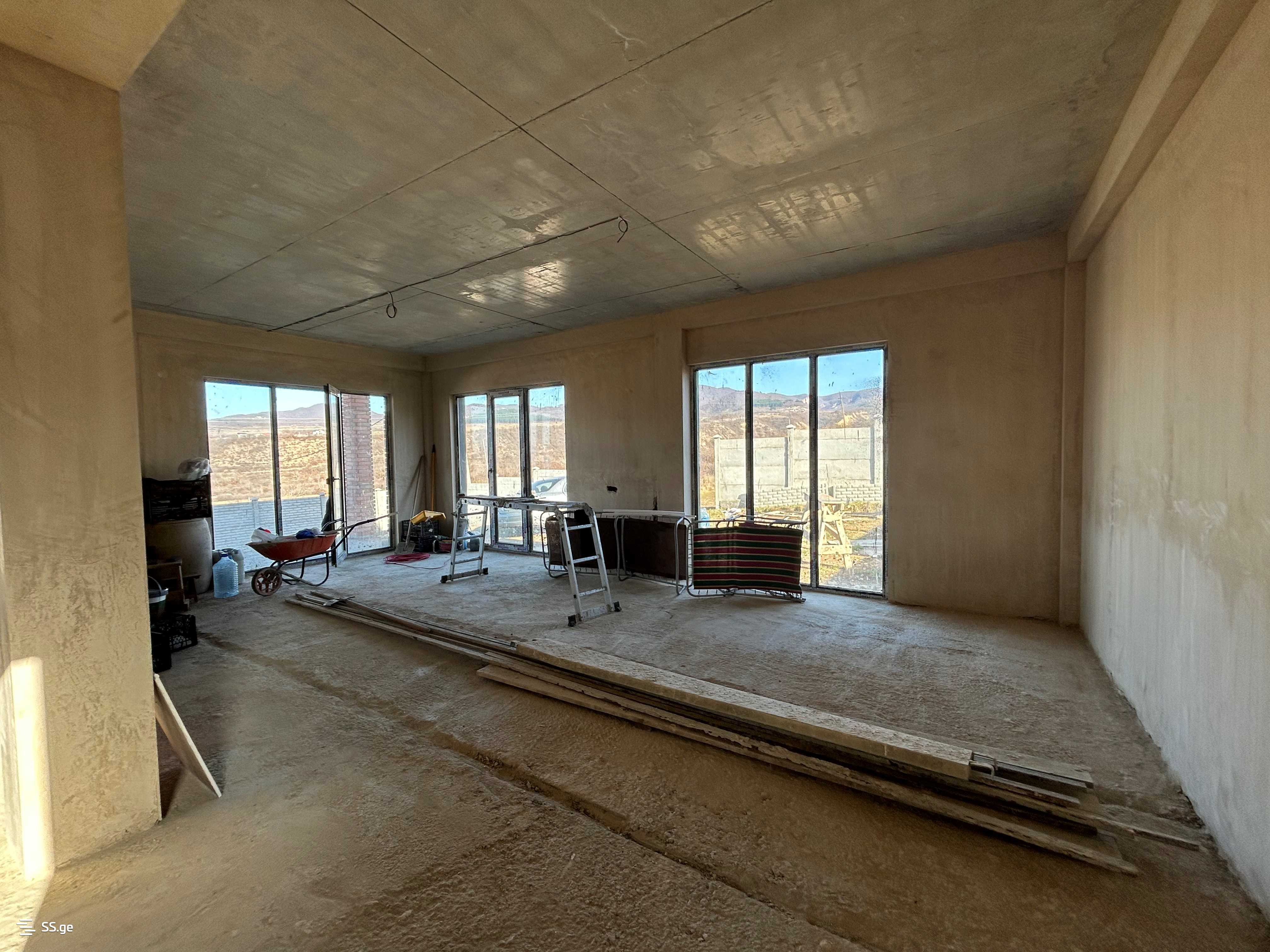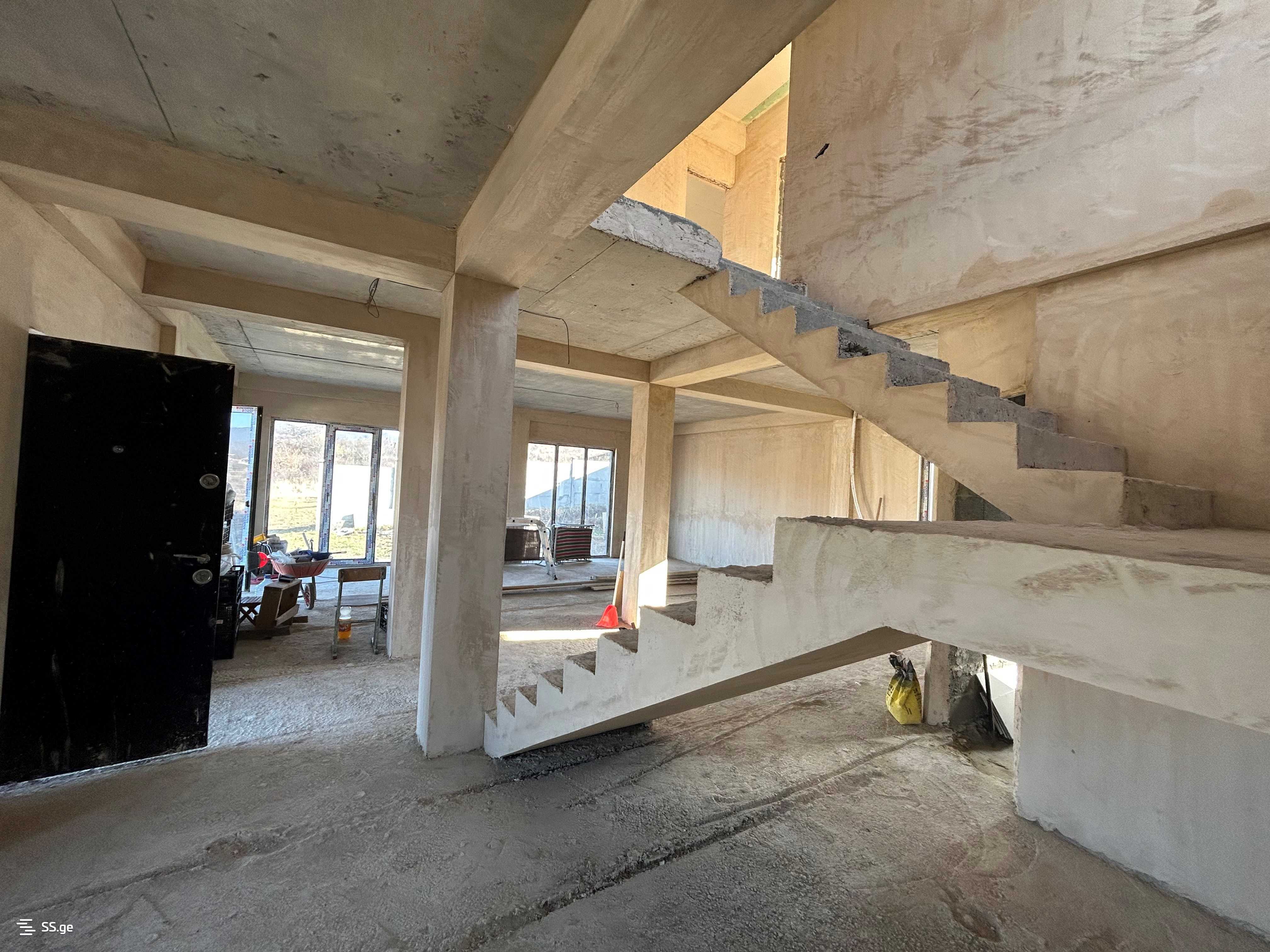Newly built 2-storey house with white frame for sale in Navdaraantkar, under construction area. The exterior facade of the house is lined with EPS thermal insulation material, which maintains the temperature according to the season. High-quality black metalloplasma windows are installed, balconies are covered with wood and brick. Electricity, central heating pipes and gas are also supplied to the house, water is supplied. The internal space of the house is 216 sq. On the 1st floor there is a living room, a bathroom and a fireplace room, on the second floor there are 3 bedrooms and a bathroom. All rooms have a balcony and a window. The yard is fenced and the area is 500 square meters
