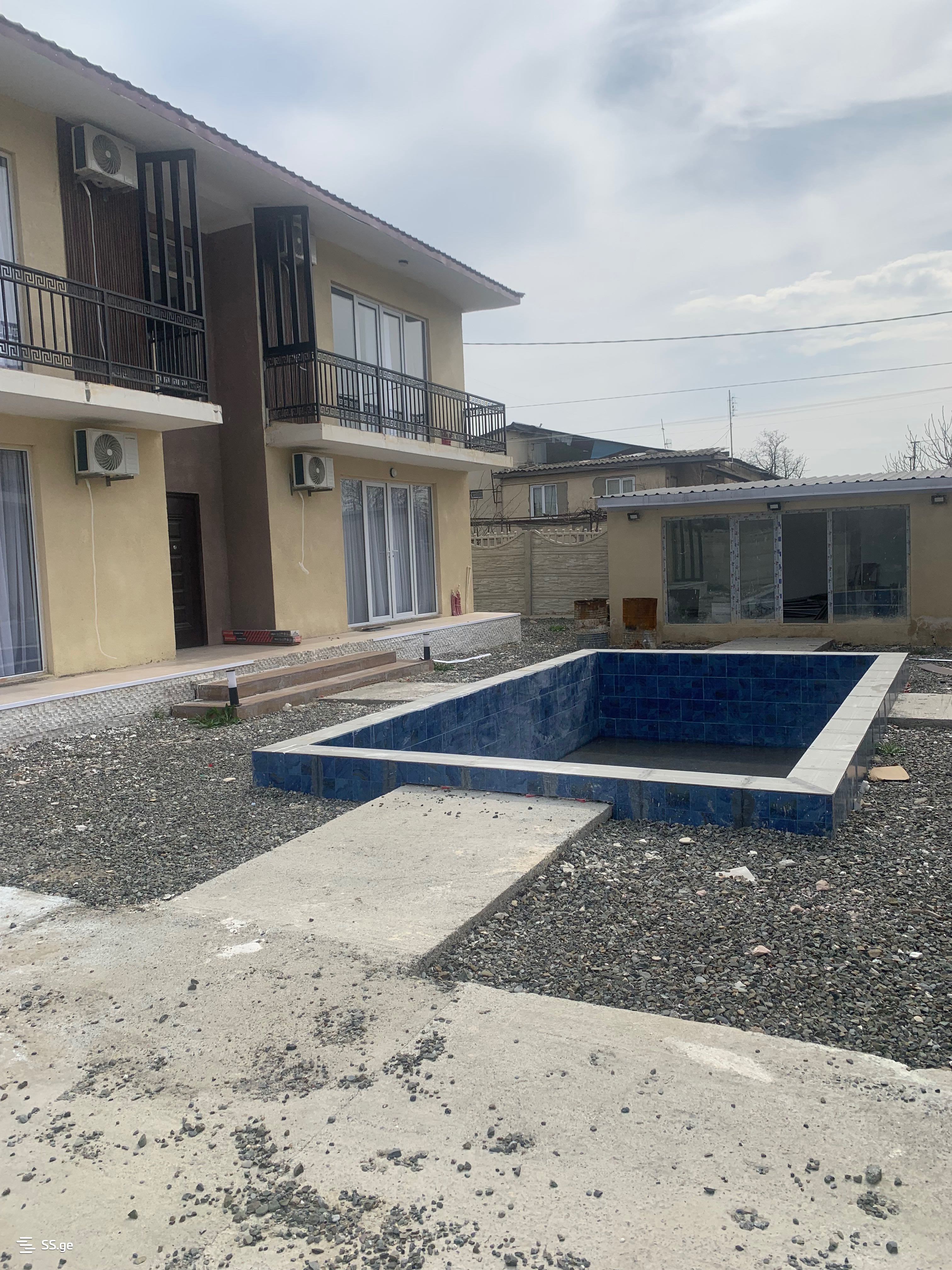 In the lower Pojichala, in a luxurious settlement, we present you a fantastic real estate. In the yard, there are 2 identical two-story houses, each 200 square meters. You can use it as both residential and hotel. There are a total of 8 exactly the same apartments. Each apartment has 2 bedrooms, a living room, and a bathroom. Fully furnished and equipped with appliances. The yard features a swimming pool. Video surveillance is underway around the yard's perimeter. For details, call 599 81 39 39.
