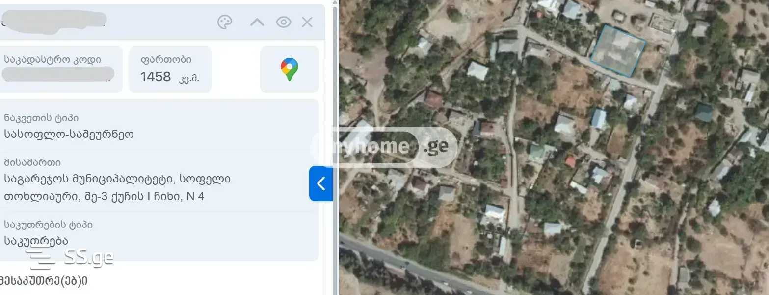 For sale private new, in the Sagarejo district village of Tokhliauri, the yard area is 1458 square meters while the living area is 180 square meters, it's 200 meters from the main road to the house, it is a highly demanded location for tourism because there are many wineries nearby, which creates great interest for tourists, the building material of the house allows for the construction of a third floor, it is an extraordinary option for investment, the house has two entrances and two large verandas, with an extraordinary view on both sides, there are a lot of fruits and pathways in the yard, agent N.M.