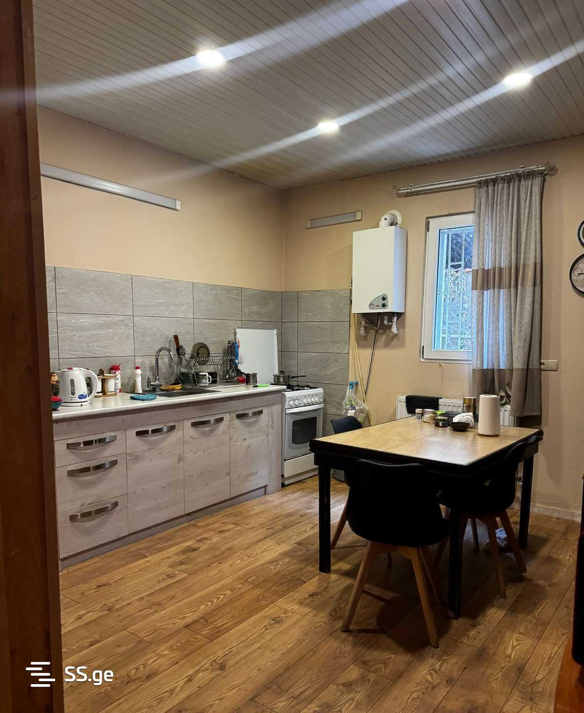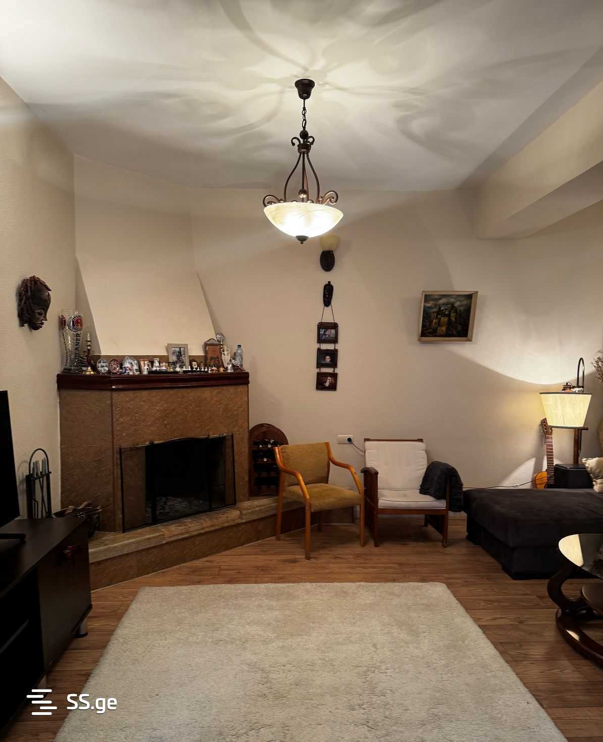 A cottage is for sale in Tsqneti. Three-story private house with a green yard and a vineyard. It has a large balcony, a tiled porch, and a fireplace. 400 sq. m house, yard 900 sq. m. Phone 599812200