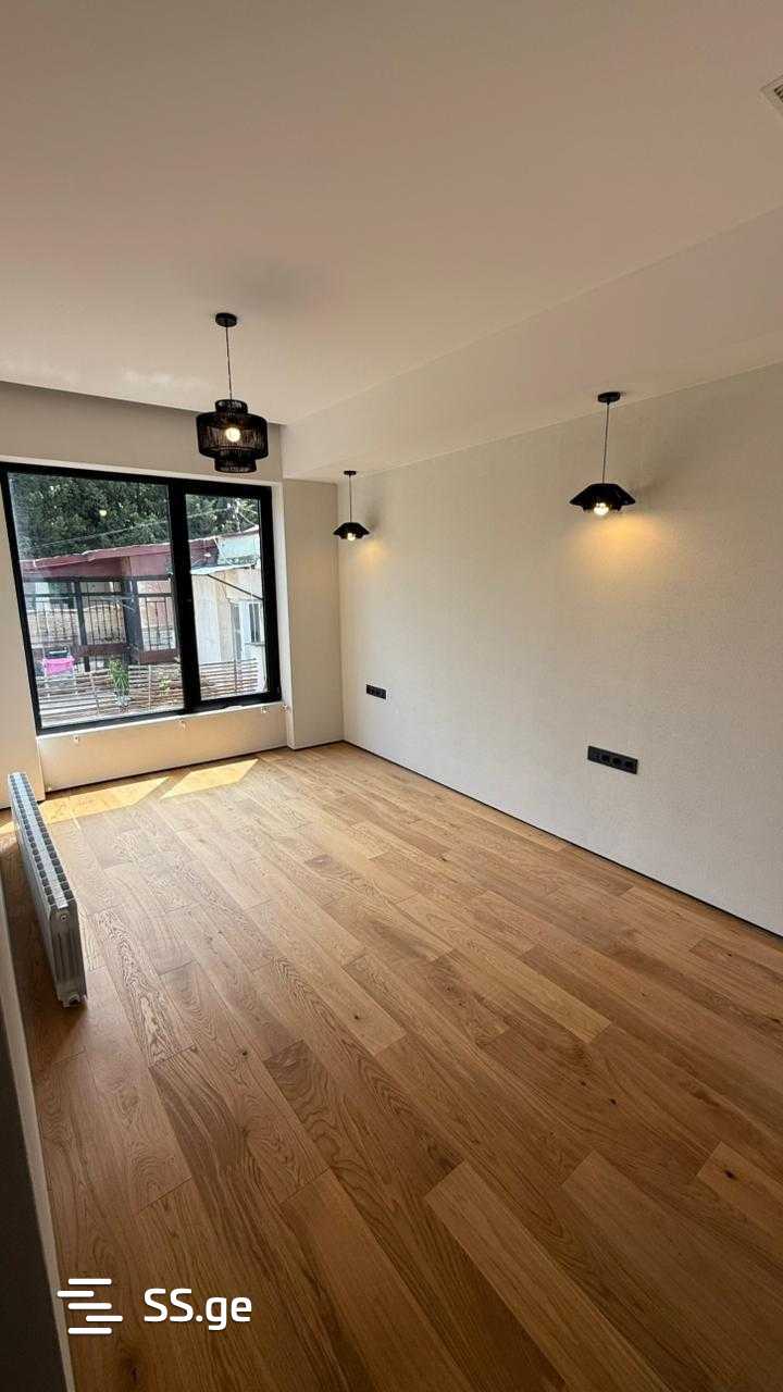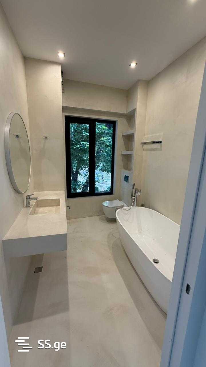 Wet areas are done with micro-cement, white oak wood parquet flooring, the kitchen is also made of white oak wood and equipped with Teka appliances.