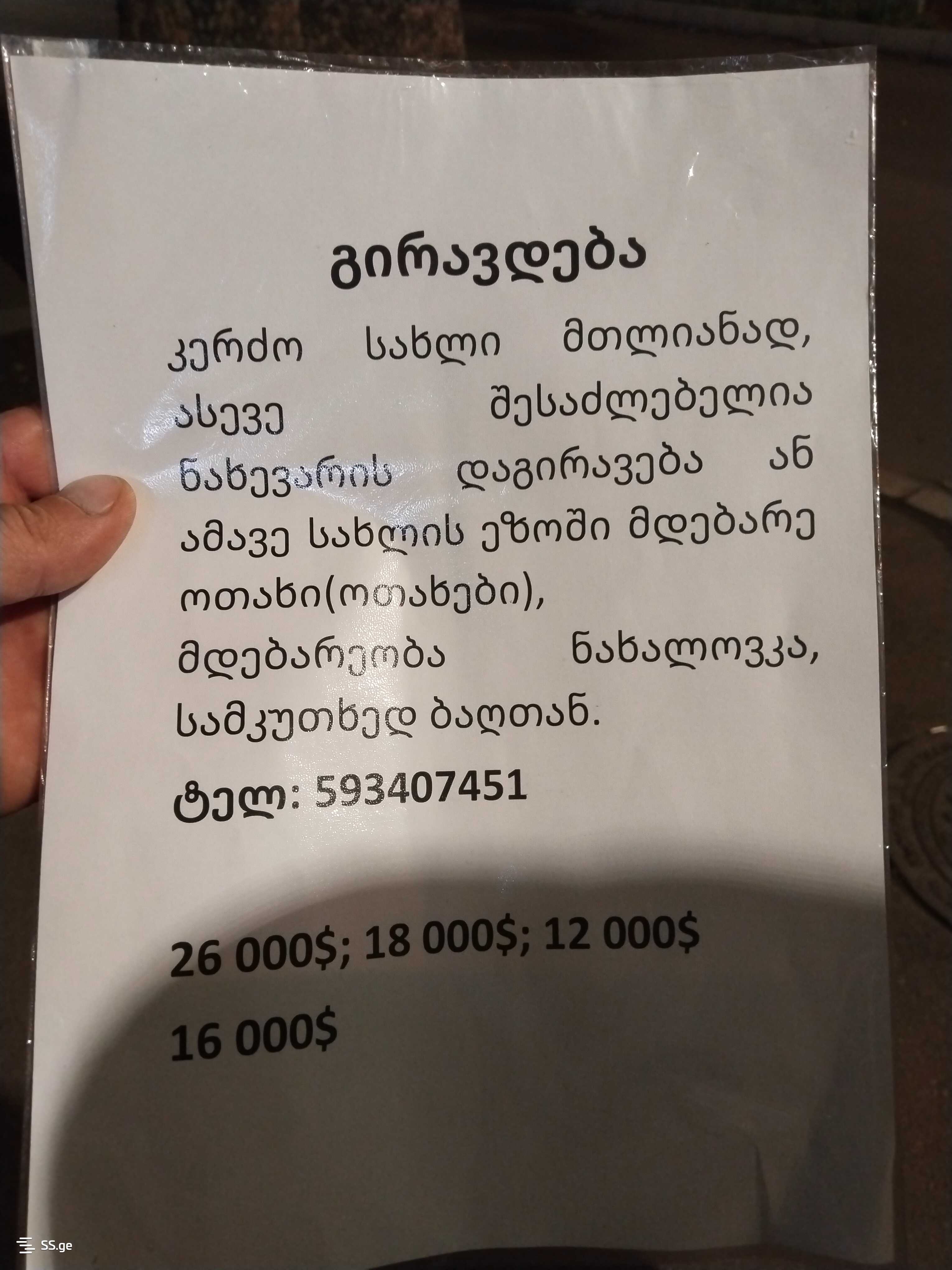 Private house and rooms in the yard are for sale. 5 minutes from the Nadlaladi metro near a triangular garden. 12000, 14000, 18000, 26000 $